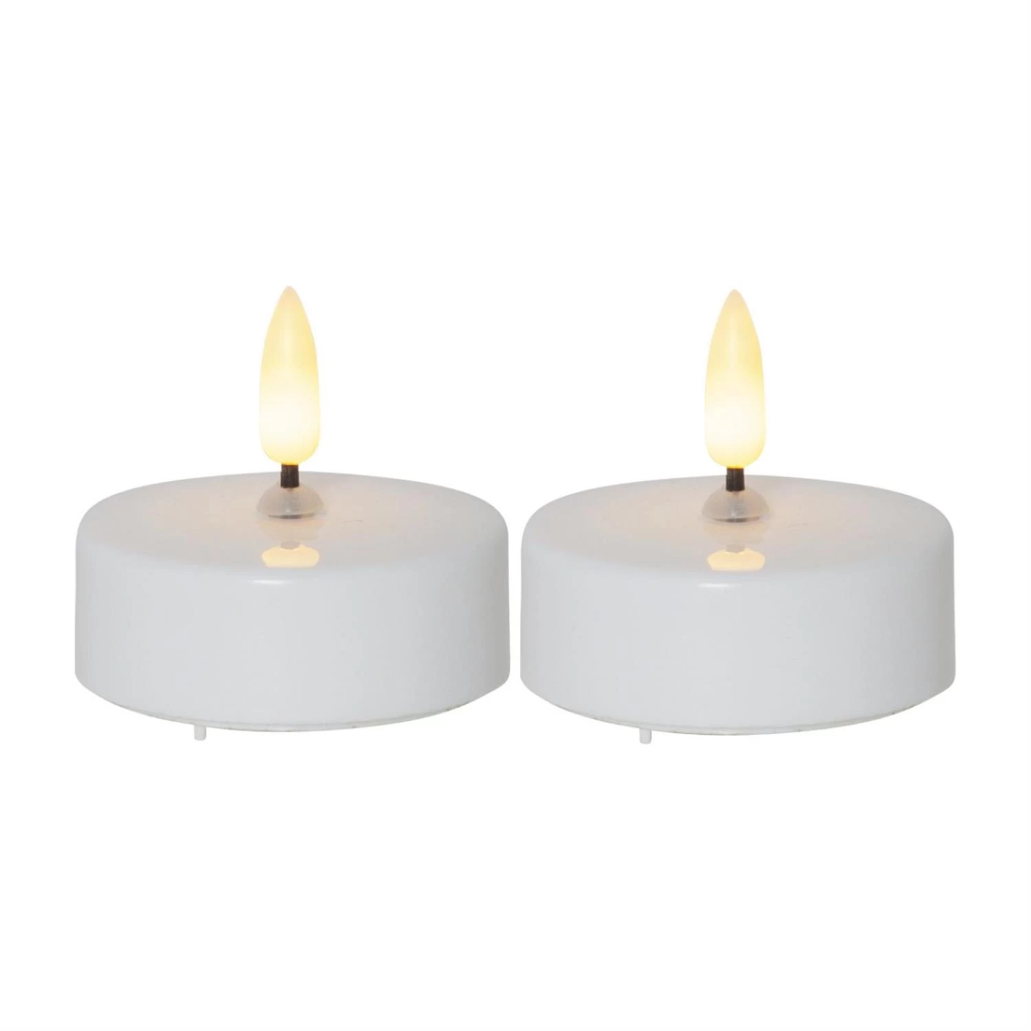 LED Teelicht – warmweiße flackernde Flamme – Batteriebetrieb – Timer – D: 5,8cm – weiß – 2er Set Dieses 2er Set Teelichter ist perfekt geeignet, um die ganze Wohnung mit kleinen flackernden Lämpchen zu dekorieren. Die warmweiße LED flackert leicht und simuliert eine echte Flamme.