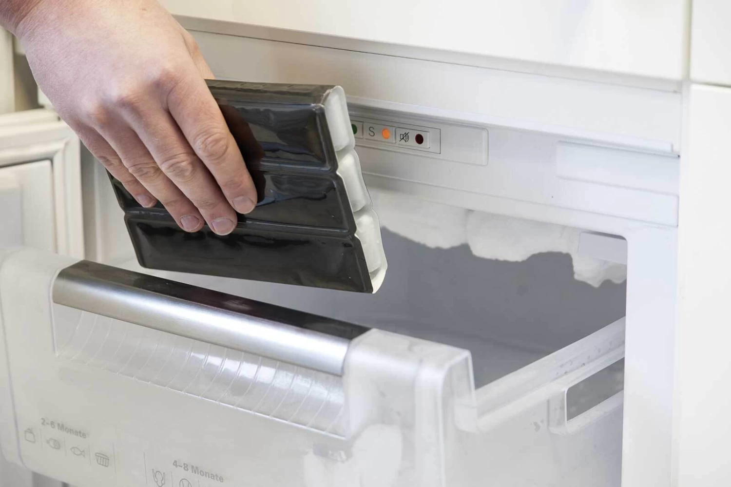 – Den flexiblen Eismantel in das Gefrierfach legen bis er kalt ist und danach über die zu kühlende Flasche ziehen