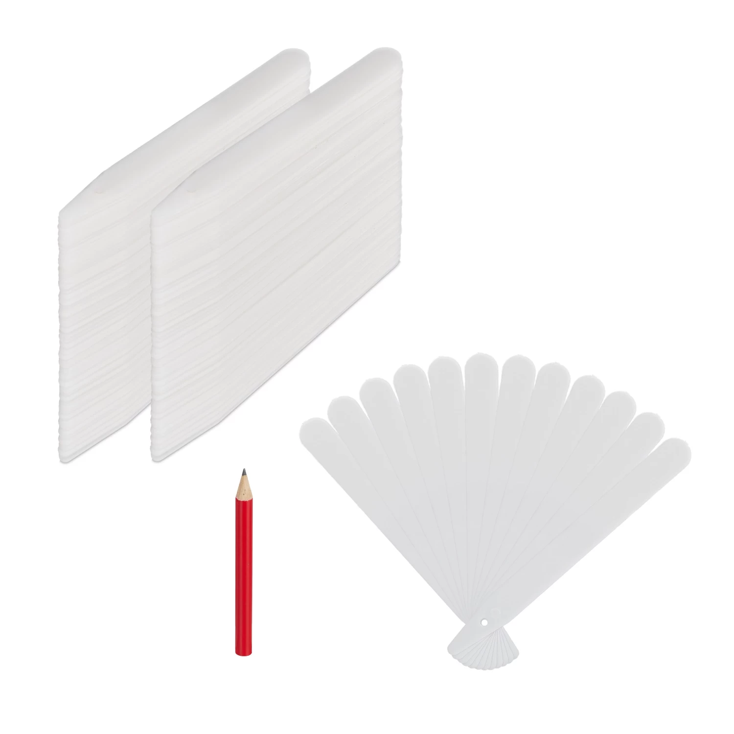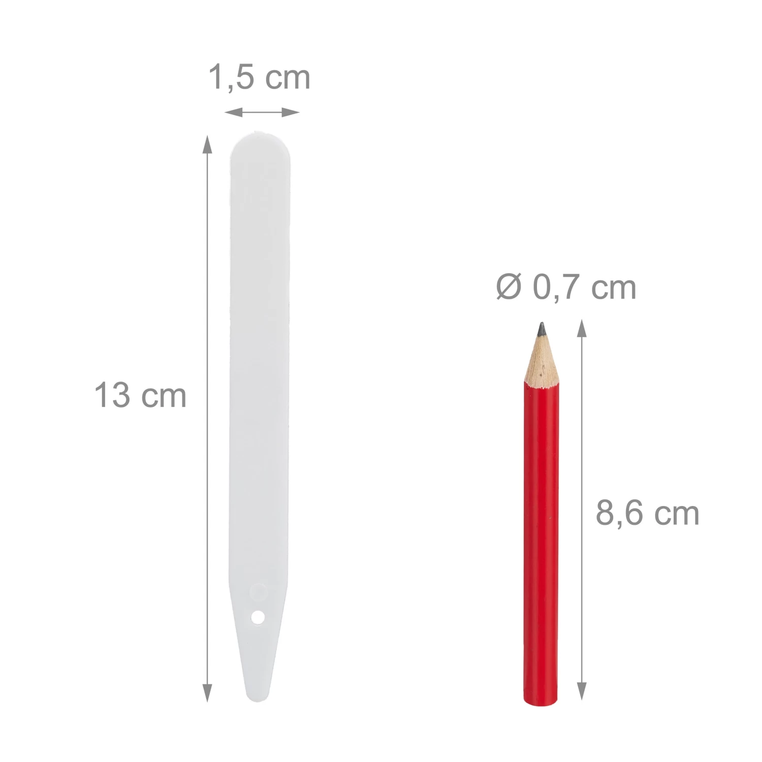 Wenn Sie im Frühjahr Ihren Garten neu bepflanzen, dann können Sie mit den Pflanzetiketten im 300er Set die gesetzten Stecklinge, Samen und Blumen kenntlich machen. Beschriften Sie die Schilder mit einem Bleistift (inkl.) und sorgen Sie so auch im Gemüsebeet für den perfekten Überblick. Um die Steckschilder wiederzuverwenden, wischen Sie diese einfach mit Spülmittel und einem feuchtem Schwamm ab. Auch für die Anzucht von Kräutern im Haus und auf dem Balkon sind die Etiketten aus Kunststoff ideal.