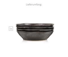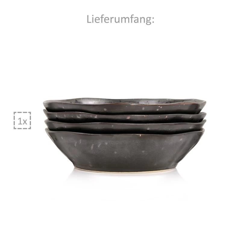 Unsere Suppenschalen sind handgefertigt, daher können kleine Abweichungen in Gewicht, Größe und Form auftreten, welche jeden Teller zu einem besonderen Unikat machen. Ebenfalls sind kleine schwarze Punkte und Einschüsse durch die Produktion möglich und unvermeidbar, diese verleihen dem Set einen handwerklichen Look. Bitte beachten Sie dies.