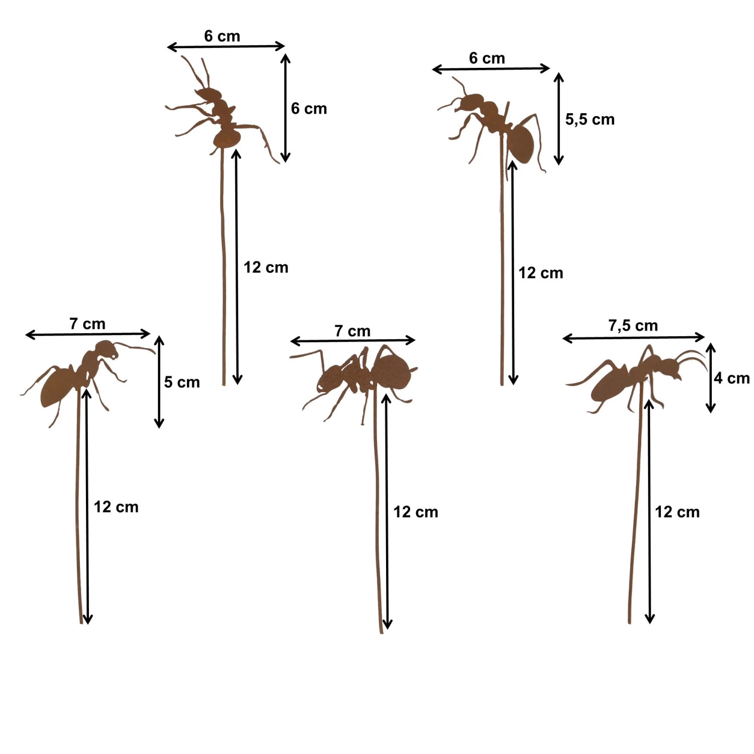 UNUS Garden Ameisen Gartenstecker 5er Set, Gartendeko Rostoptik, Roststecker aus Edelrost Metall, Rost Deko für Garten Terrasse Balkon Blumentopf