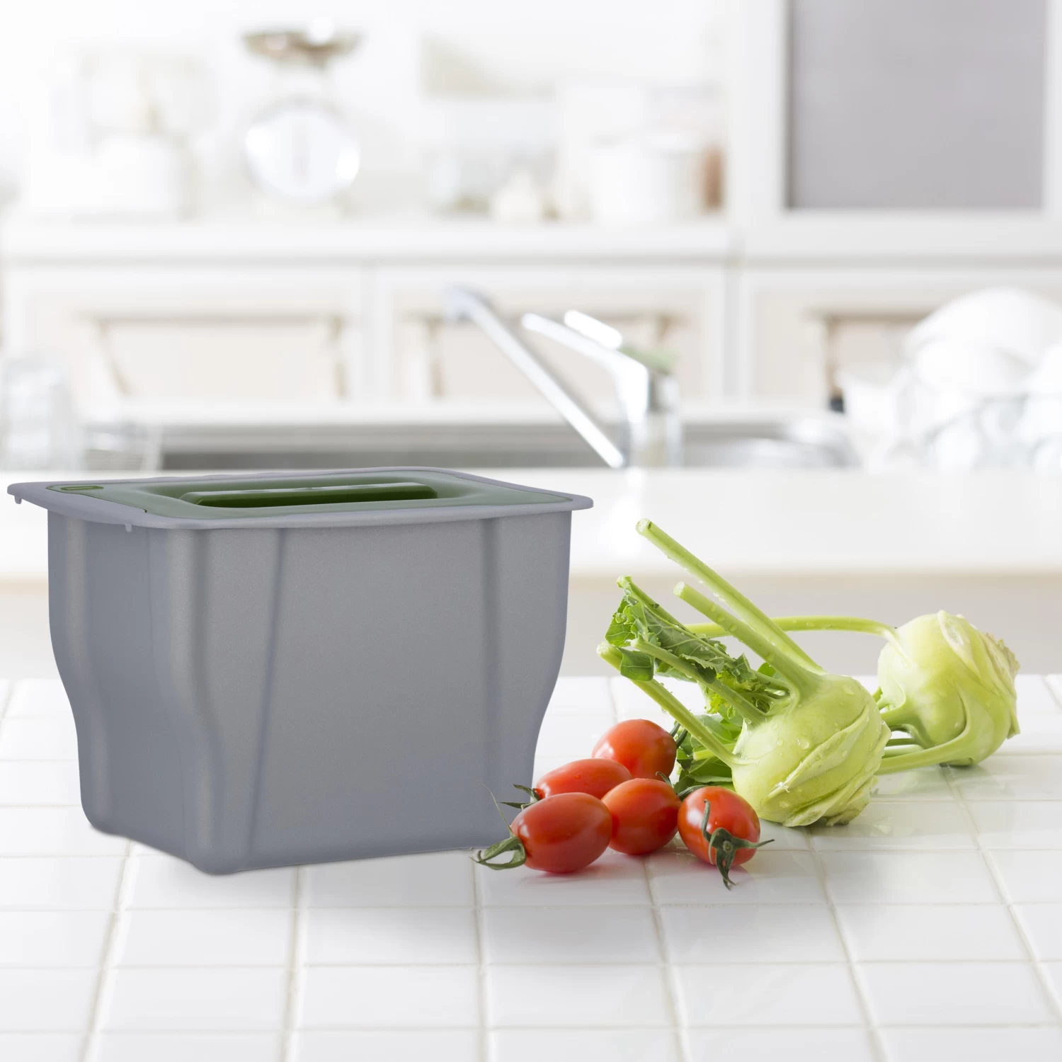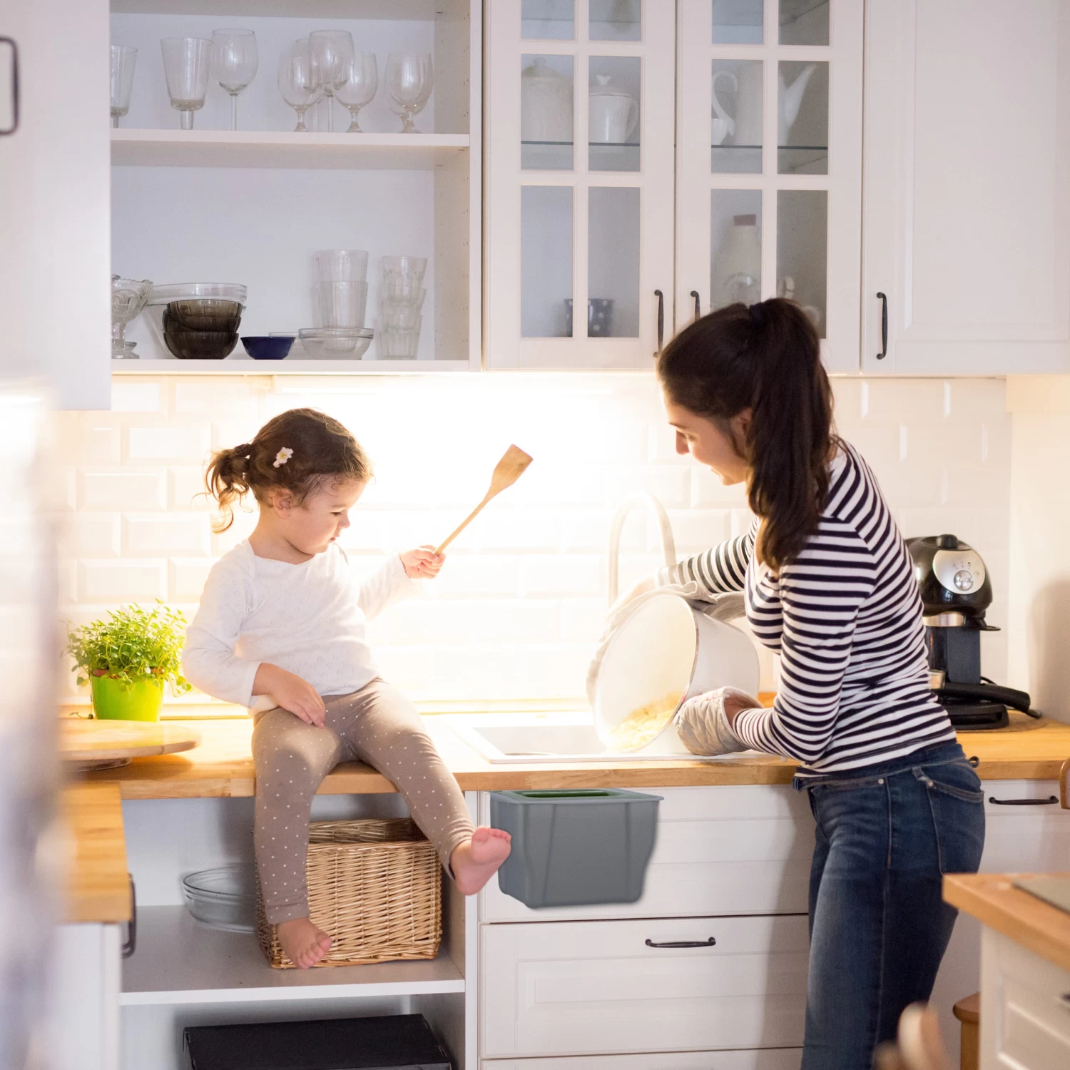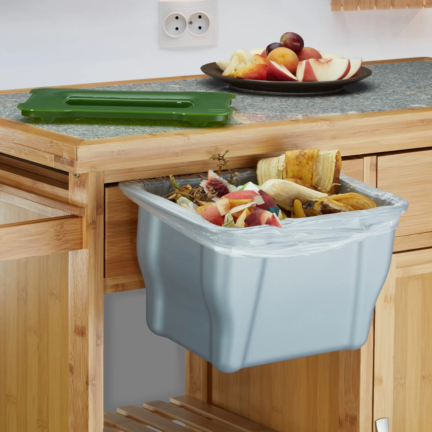 Der biegsame und dennoch robuste Haken ermöglicht es Ihnen, den Biomülleimer aus Kunststoff an Schubladen, Schranktüren und viele anderen Küchenmöbeln anzuhängen. Der Biomülleimer lässt sich auch als Kompostbehälter im Garten oder als nützliche Aufbewahrungsbox im Haushalt verwenden.