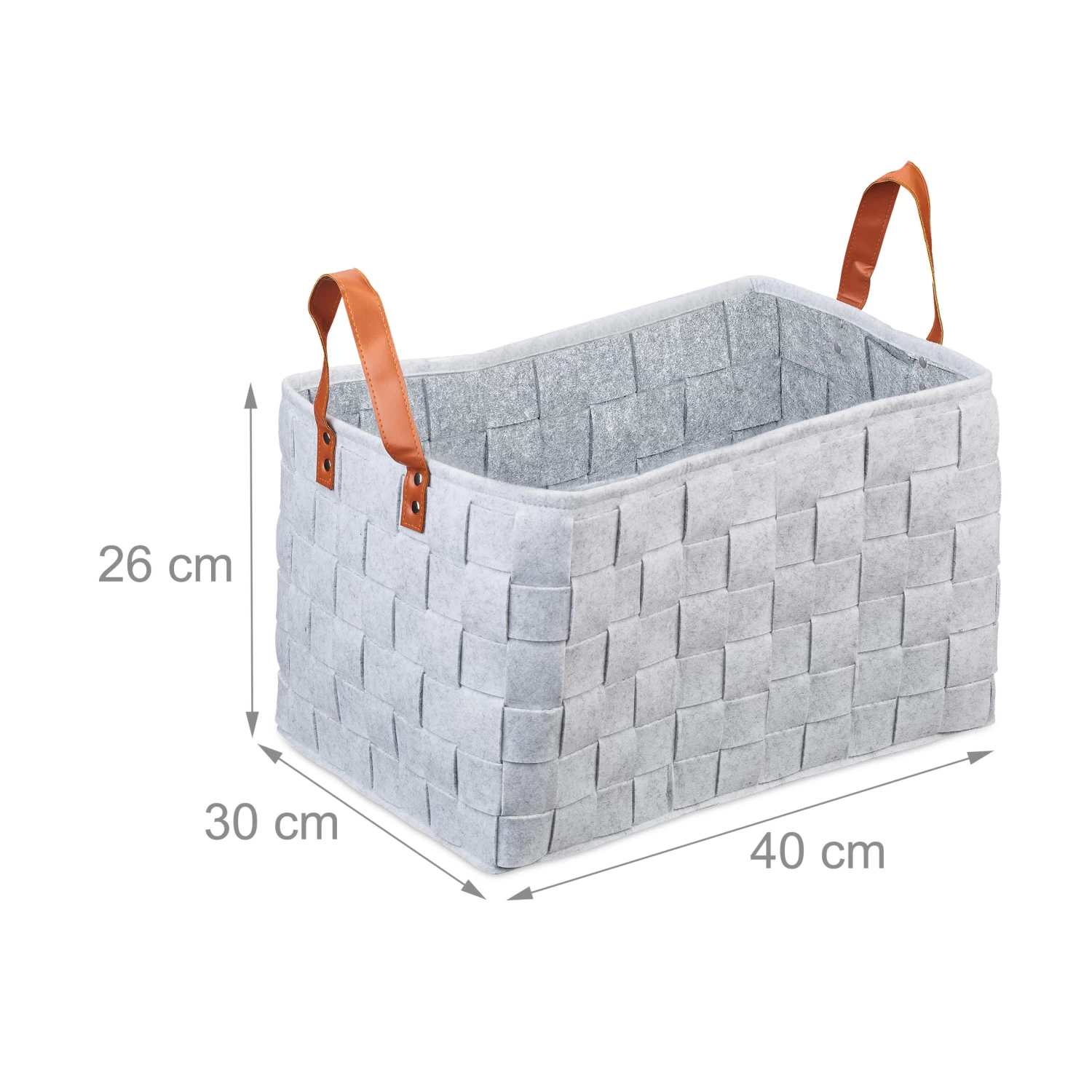 – Zwei Henkel aus braunem Kunstleder für bequemes Tragen