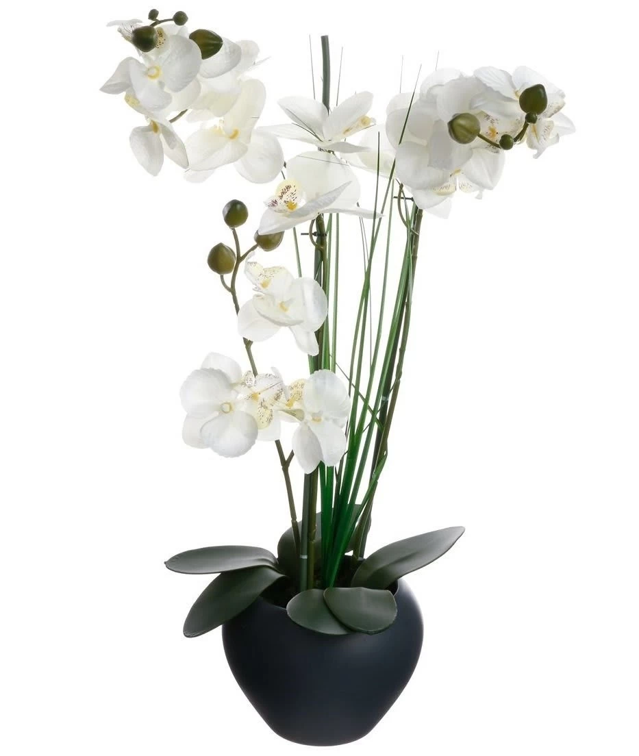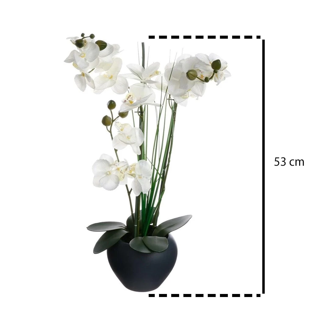 Künstliche Blumenkomposition ist eine einzigartige Dekoration, die Ihr graues Interieur des Raumes mit seiner Schönheit beleuchten wird. Eine Orchidee mit einer Keramikvase in einer atemberaubenden Anordnung findet ihren Platz in Ihren vier Wänden. Dekorative Vase ist aus hochwertiger Keramik. Die Blume der weißen Orchidee verleiht jedem Raum Eleganz. Produk