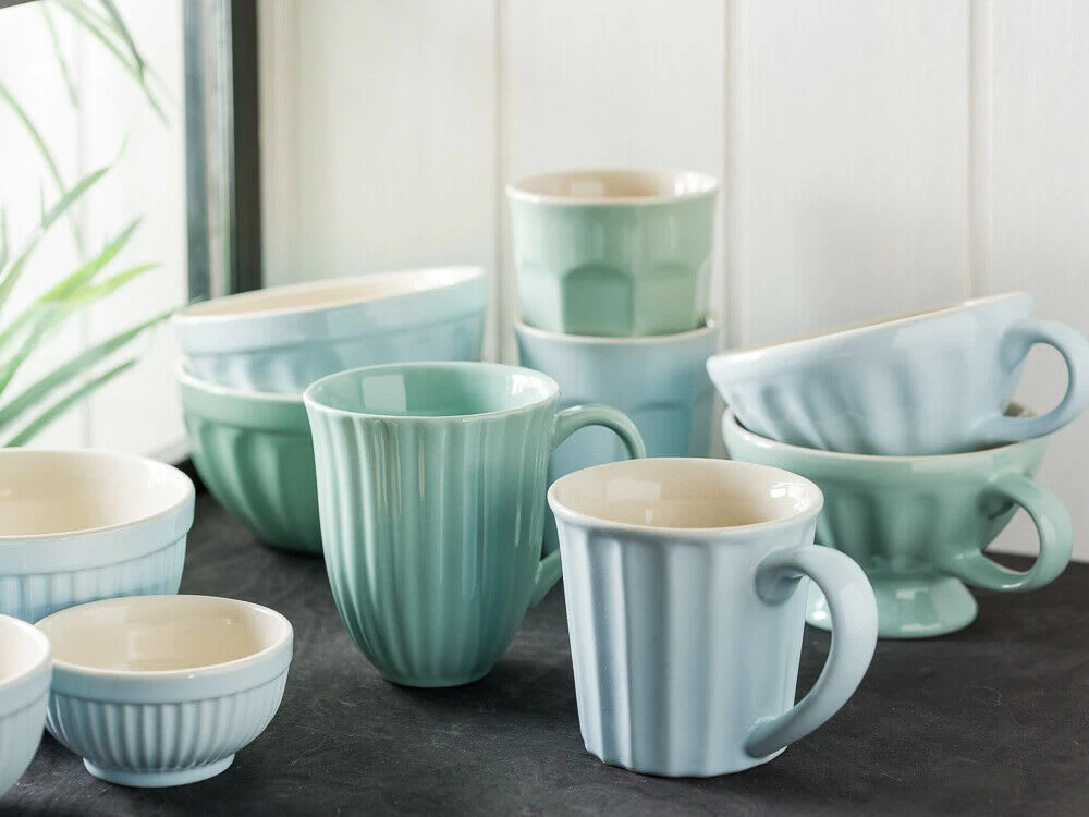 Getränke, die so wunderbar serviert werden, schmecken bestimmt noch einmal so gut. Hier kommt er – ein wunderschöner hellblauer Becher, der mit seinem erfrischenden Flair begeistert. Eine schlichte konische Form, die dezent angedeutete Rillenoptik und das farblich abgesetzte Innere setzen besondere Akzente.