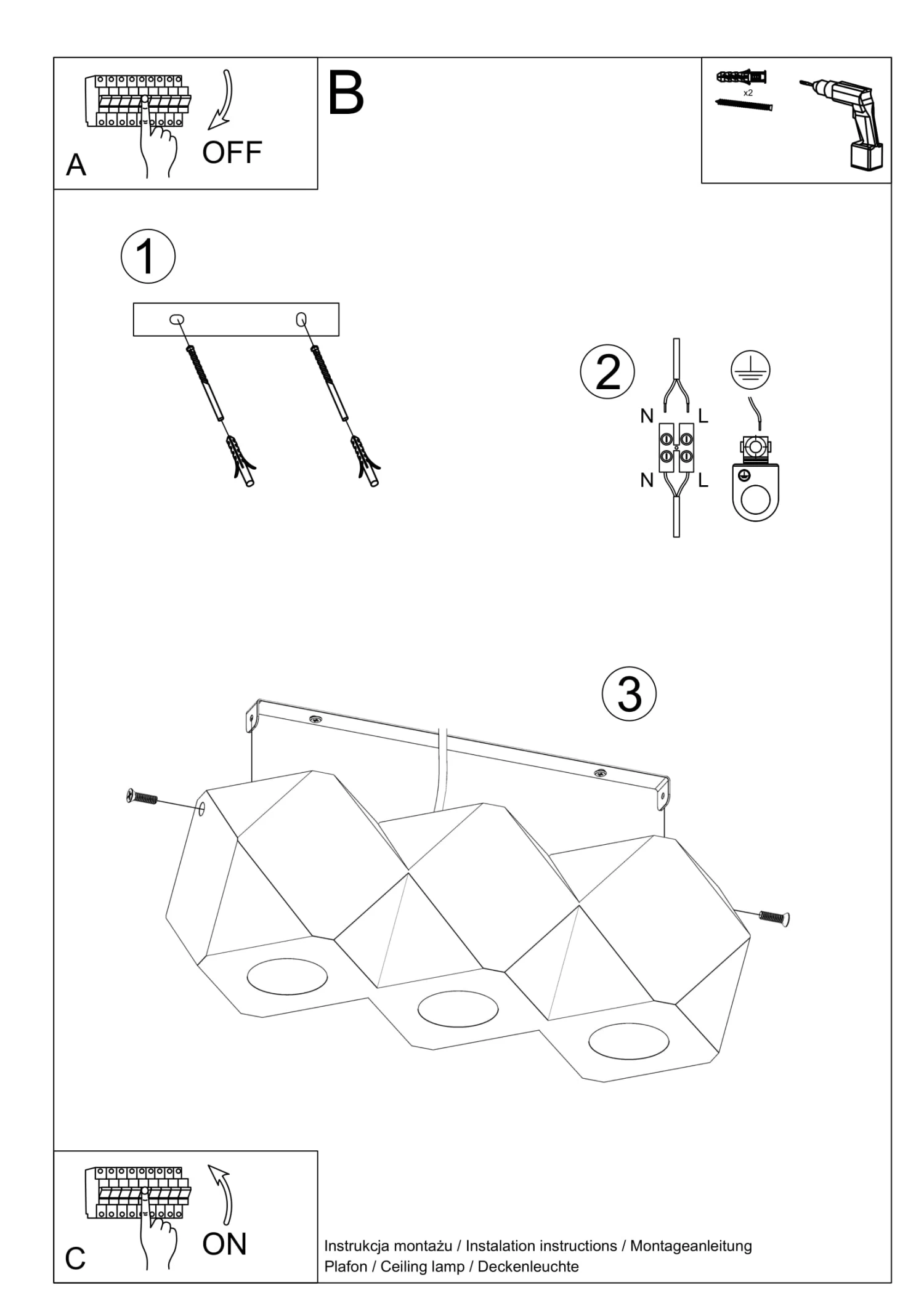 Leuchtmittel: GU10, 3x40W, 3x12W LED, 50-60Hz, ~220-230V, IP20, Schutzklasse I