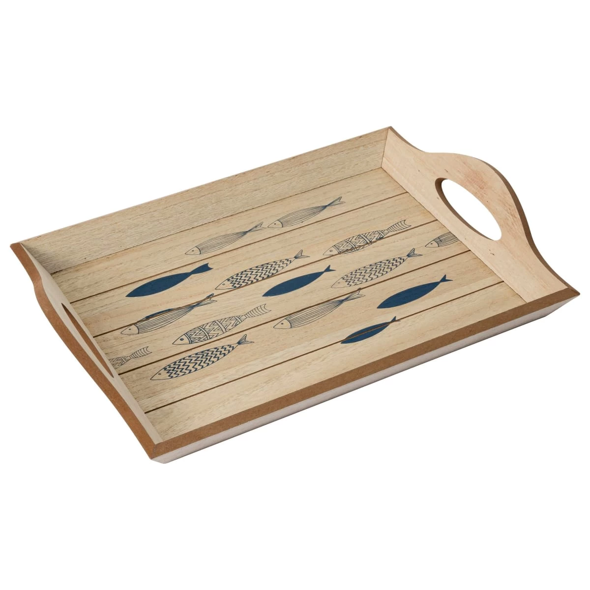 Niedliches Holztablett mit maritimem Fisch-Motiv. Zum individuellen Gestalten und Dekorieren