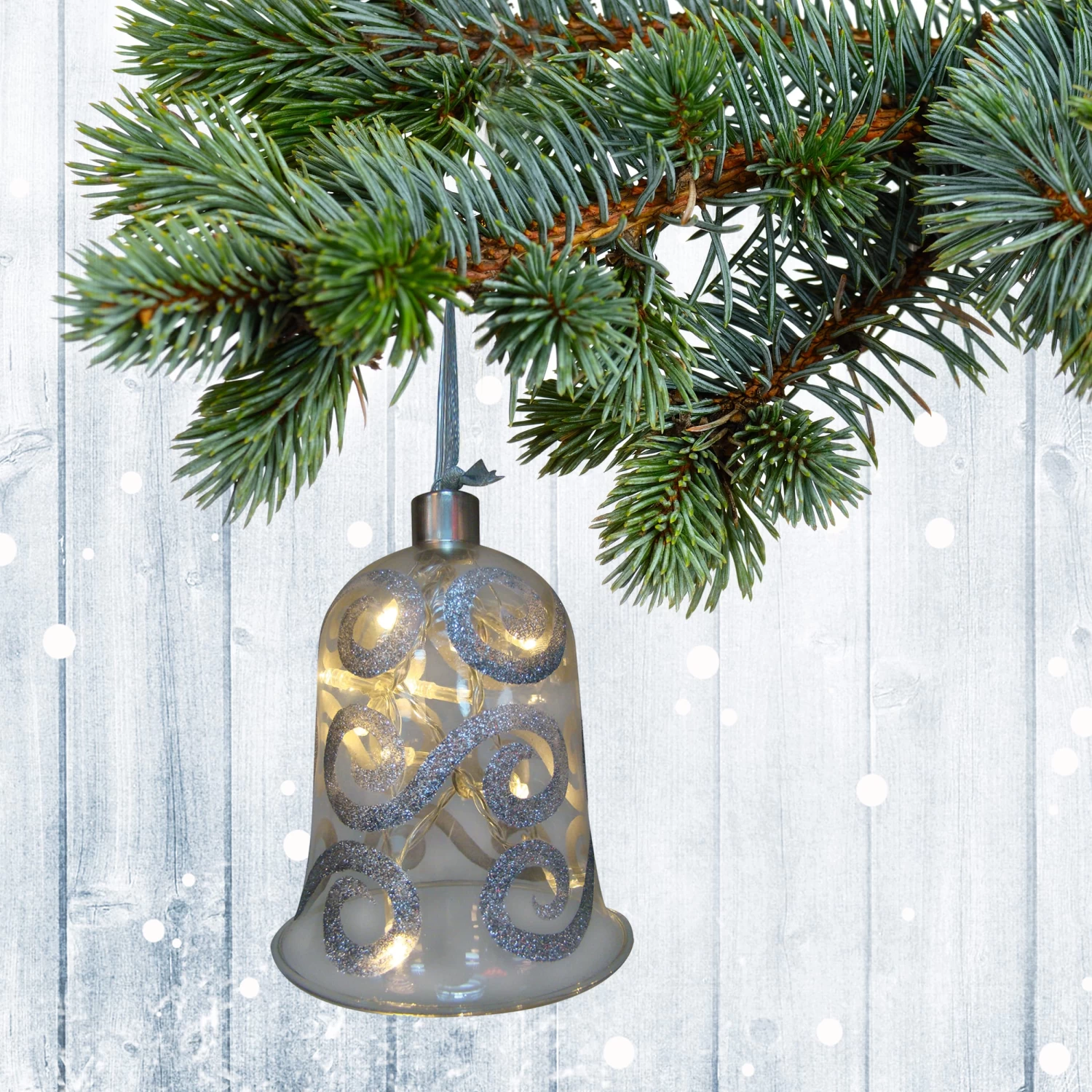 Dekoglas mit Lichterkette „Glocke“ 4er-Set in Silber
