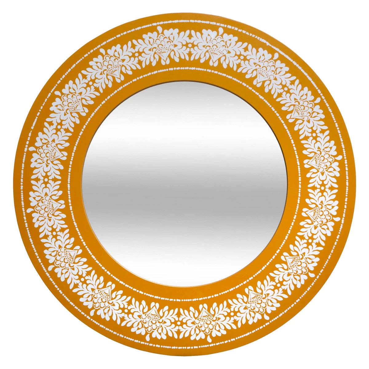 Der runde Spiegel mit Volksmotiv ist ein Lob für traditionelles Design