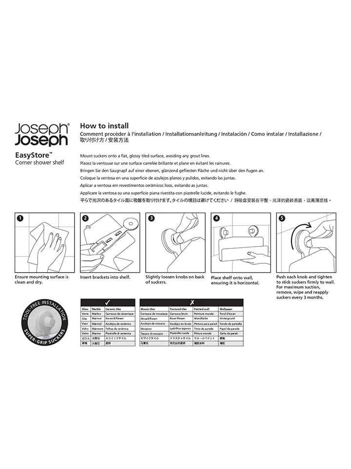 – inklusive Haken für Rasierer, Schwämme, Waschlappen und mehr