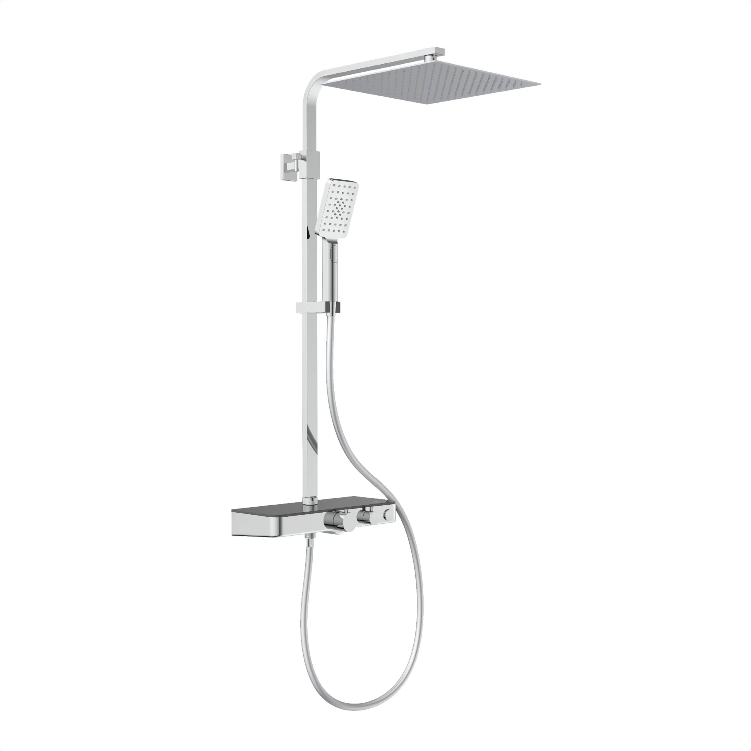 Die stilvoll in der Ablage integrierte Thermostatarmatur vermeidet Temperaturschwankungen während des Duschens und die