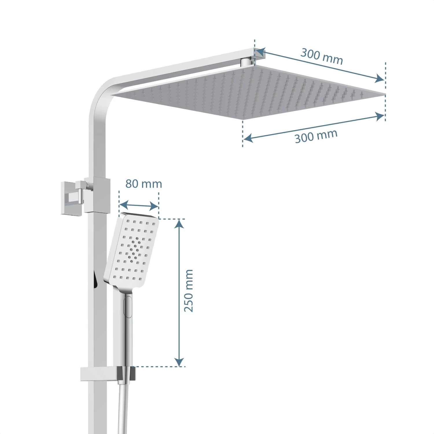 • Kopfbrause: Edelstahl verchromt, ca. 300 x 300 mm