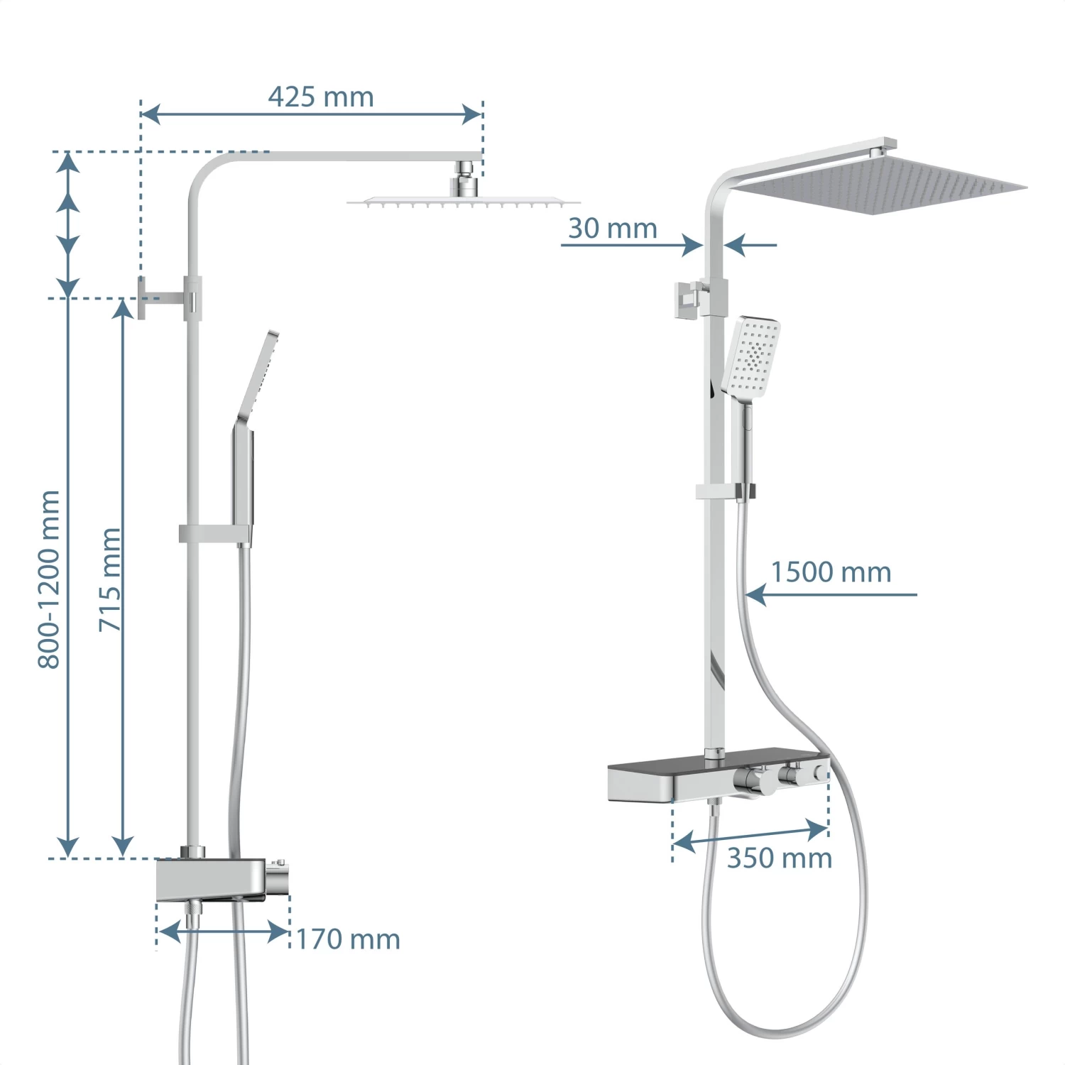 Hochwertige Duschsäule mit höhenverstellbare Brausestange (Höhe ca. 80 – 120 cm) im Eckprofil.