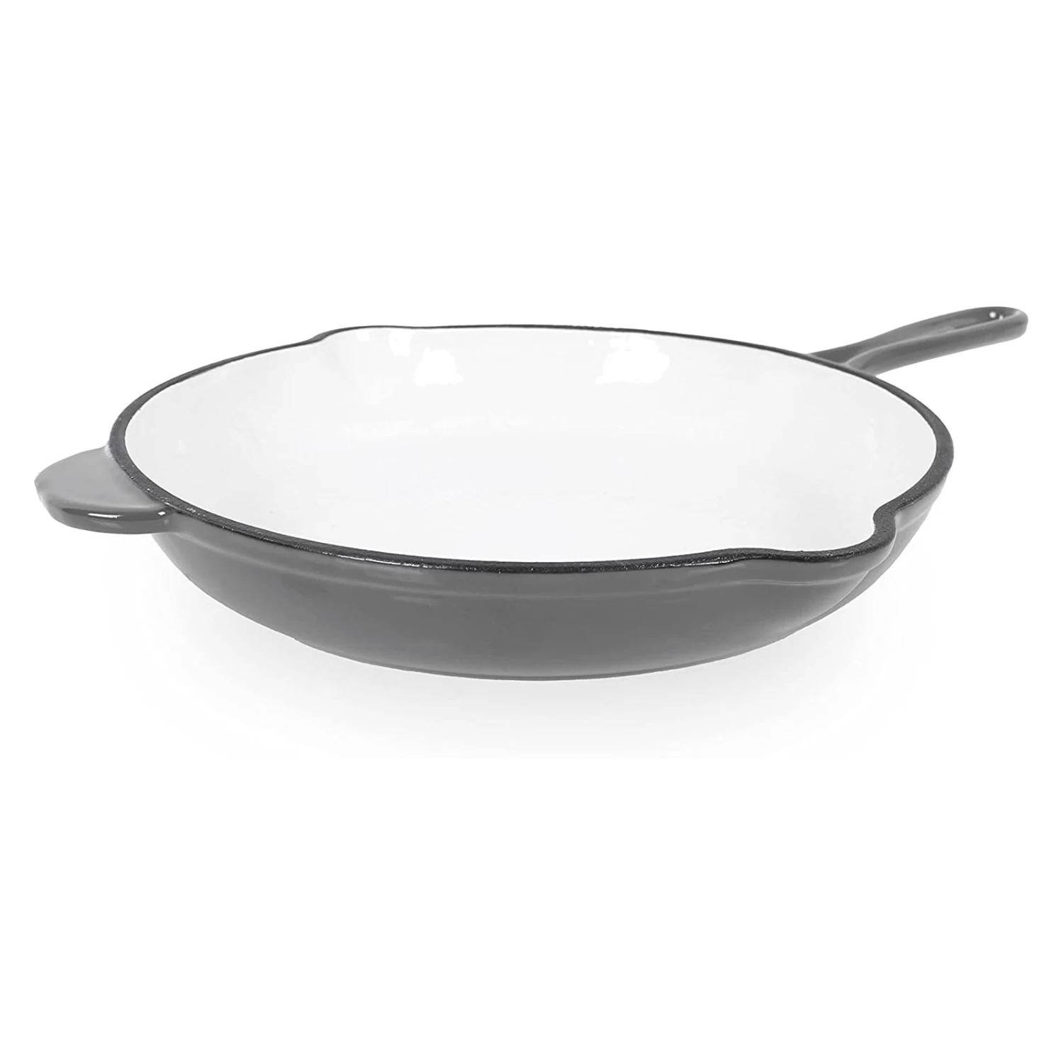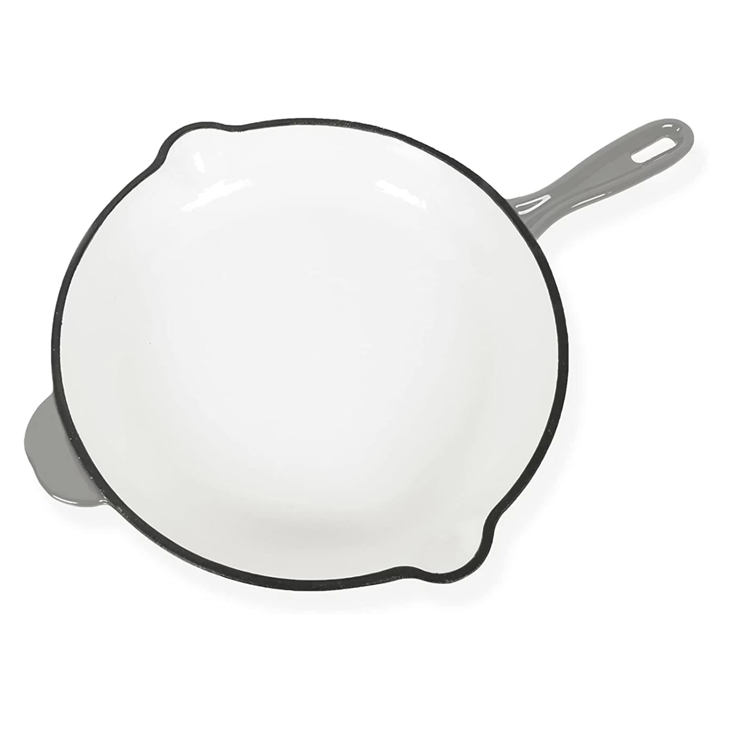 Die Bratpfanne aus Gusseisen eignet sich für alle Herdarten. Dank der Versiegelung mit einer Emaille-Schicht lässt sich die Offenpfanne mühelos reinigen und hält locker hohen Temperaturen stand.
