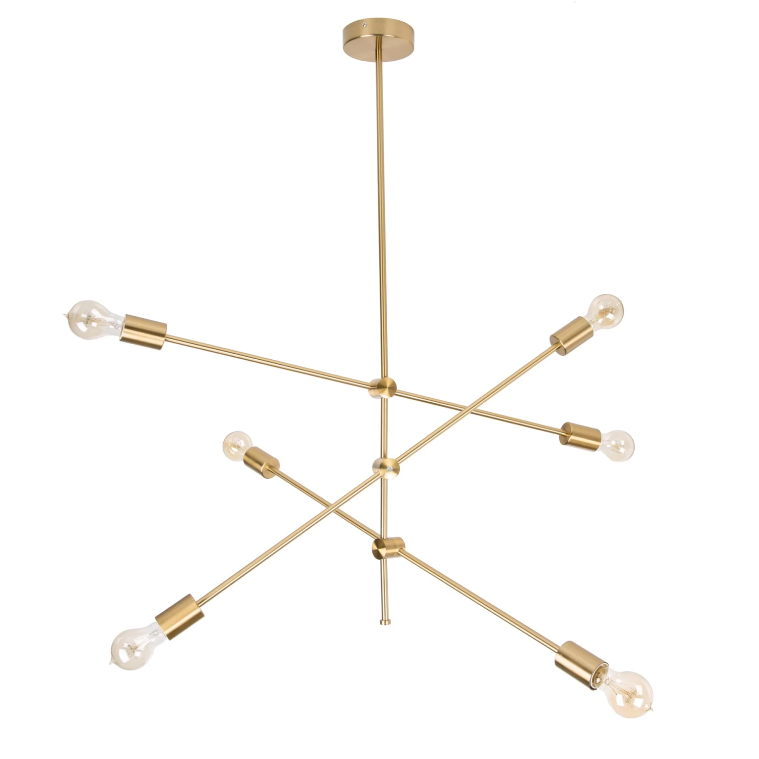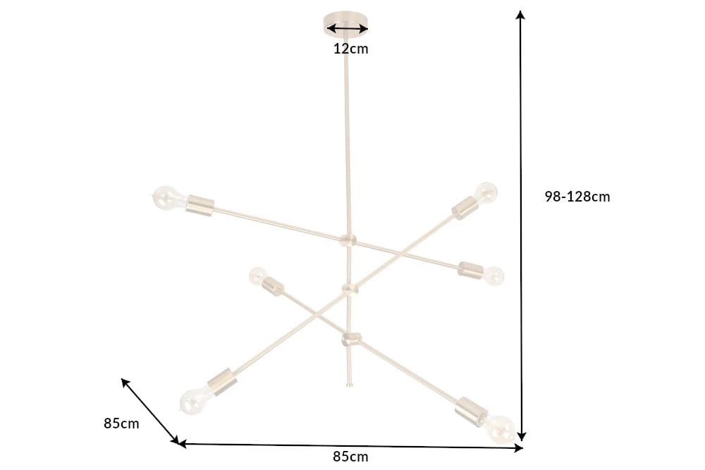 Setze einen strahlenden Akzent in Deinem Ambiente! Unsere Lampe VARIATION beeindruckt auf den ersten Blick mit einem außergewöhnlichen Design, welches moderne Designelemente und zeitlose Eleganz gekonnt miteinander verbindet. In scheinbar willkürlicher Anordnung wurden die Aufhängungen asymmetrisch an einer langen Metallstange befestigt. So strahlen die sechs am Scharnier schwenkbaren Leuchtmittel in alle Richtungen und wirken wie funkelnde Sterne.