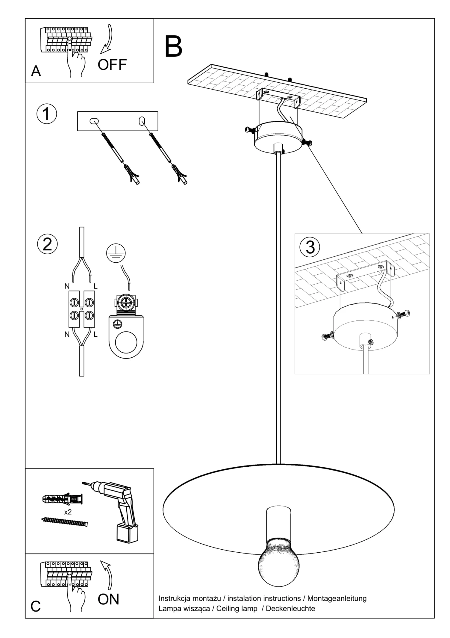 Leuchtmittel: E27, 1x60W, 50Hz, 220V, IP20