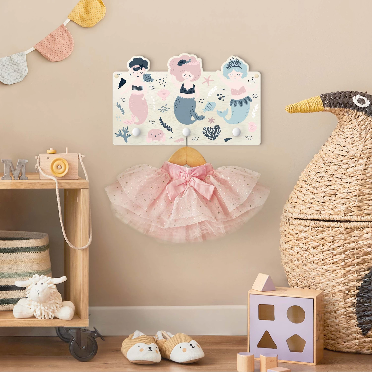 – Vorgebohrte Holz-Kindergarderobe