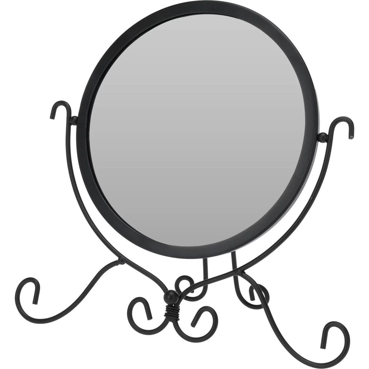 Dekorativer Rahmen: Der Spiegelrahmen, der eine stabile Positionierung auf einem Tisch oder Schminktisch ermöglicht, hat eine dekorative Form. Die gedrehten Staubblätter umhüllen den runden Spiegel dezent und verleihen ihm ein interessantes Merkmal.