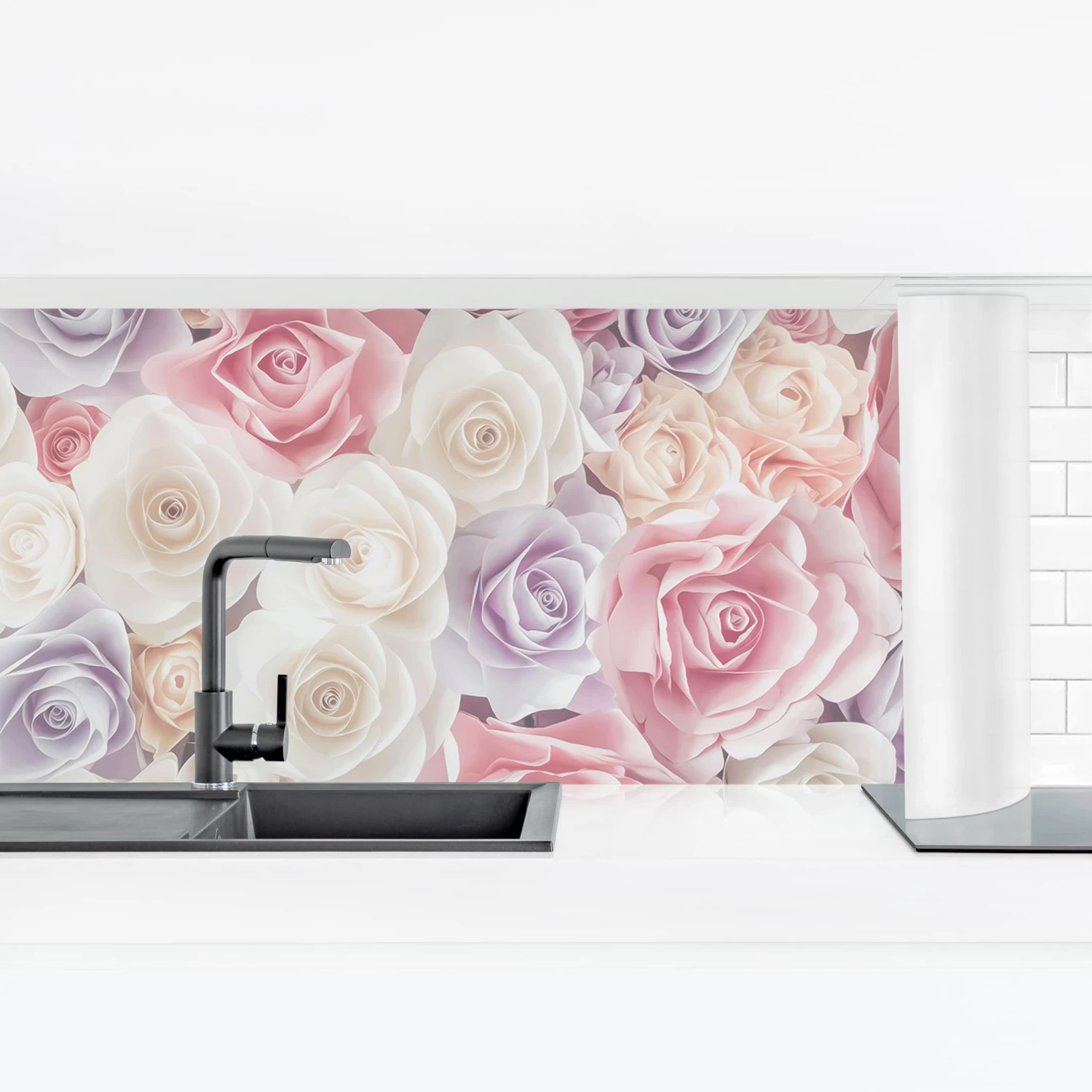 Küchenrückwand – Pastell Paper Art Rosen In Pastell