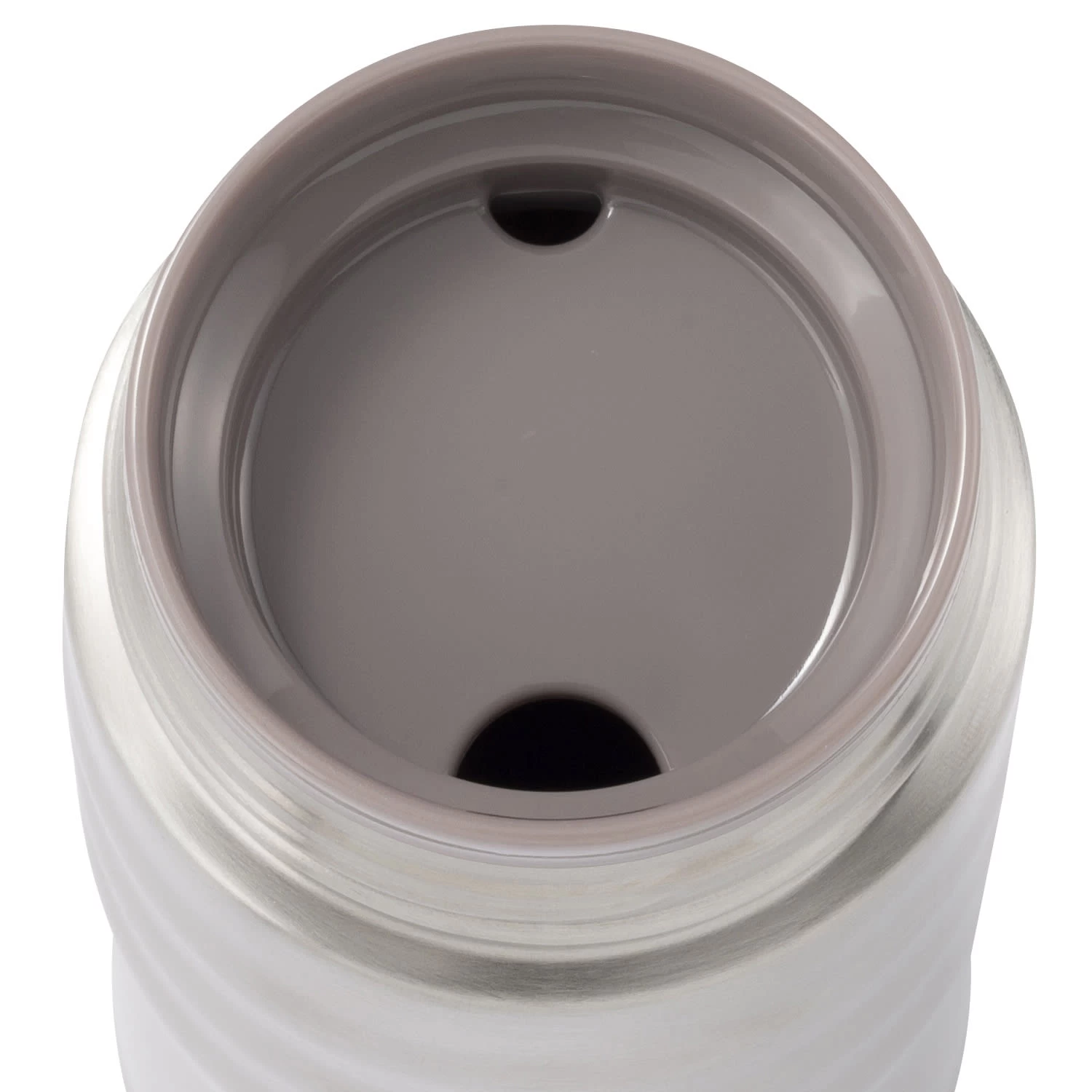 Der Thermobecher Twist Top von Kyocera verfügt über eine praktische und dauerhafte keramische Innenbeschichtung. Diese verhindert Geschmacksbeeinflussungen durch verschiedene Getränke, wie Kaffee oder Tee, und beugt Verschmutzung oder Korrosion effektiv vor – im Gegensatz zu Thermobechern, die innen mit Metall oder anderen reaktiven Materialien ausgekleidet sind. Ob dampfend heiße oder eiskalte Getränke, dank der Vakuum-Doppelwände aus Edelstahl hält die Flasche besonders lange ihre Temperatur. Der Twist Top Deckel ist ein dicht schließenden Schraubverschluss. Fassungsvermögen: 350 ml| Höhe: 16,5 cm