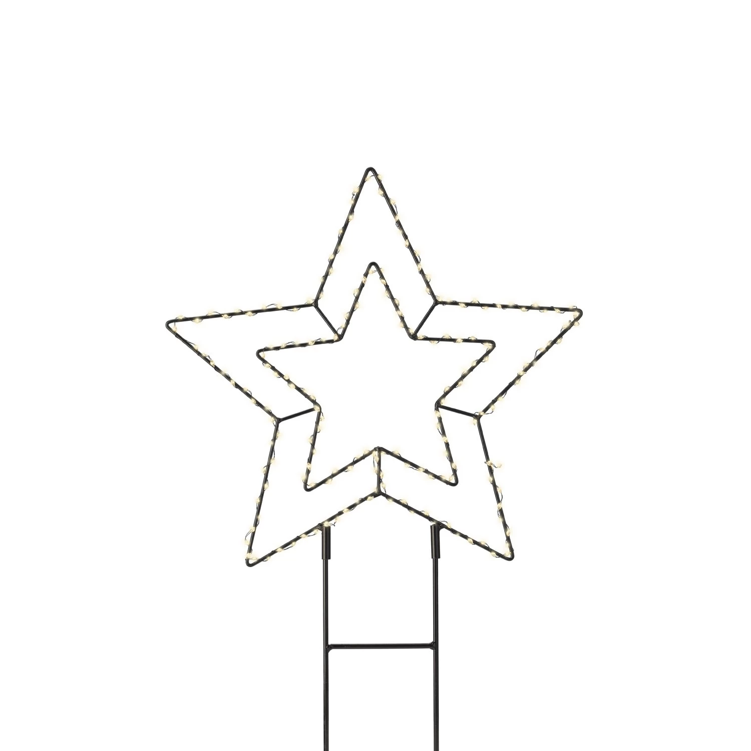 LED Gartenstecker STERN – 180 warmweiße LED – D: 38cm – Trafo – für Außen – schwarz Dieser LED Gartenstecker als Stern ist in der Weihnachtszeit ein echter Hingucker in Deinem Vorgarten, in Blumentöpfen, Balkonkästen oder im Blumenbeet im Garten. Die Drahtlichterkette mit den 180 warmweißen LED schlängelt sich um das schwarze Gestell des Sterns und leuchtet einfach wunderschön.