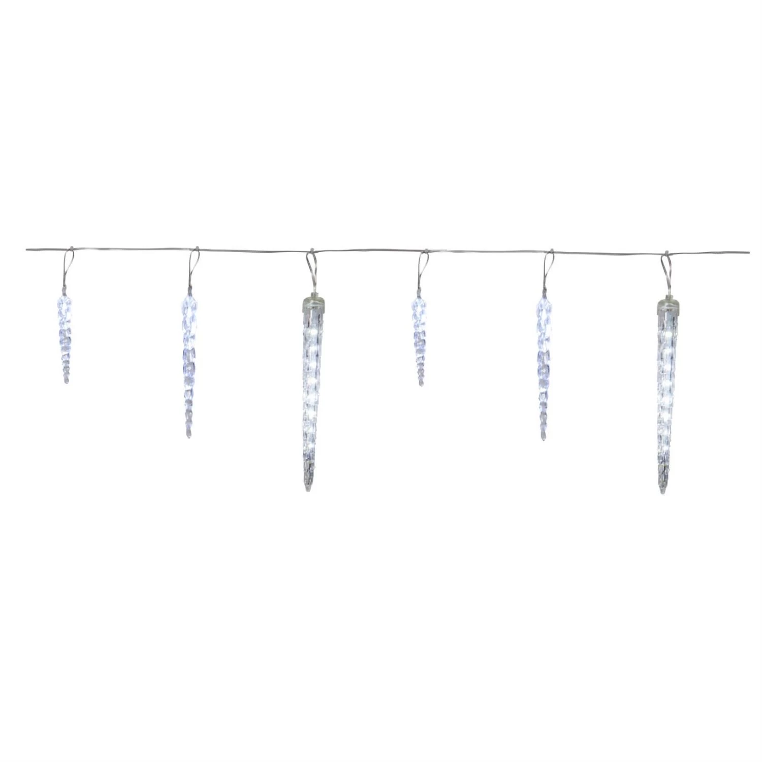 LED Lichterkette Eiszapfen – 24 Eiszapfen – kaltweiße LED – Dauerlicht/Lauflicht – L: 7m – f. Außen Winterliche Lichterkette mit 24 leuchtenden Eiszapfen aus Acryl. Die Eiszapfen leuchten in kaltweißem Licht und passen so perfekt zu einer richtig schönen Außenbeleuchtung in der kalten Jahreszeit.