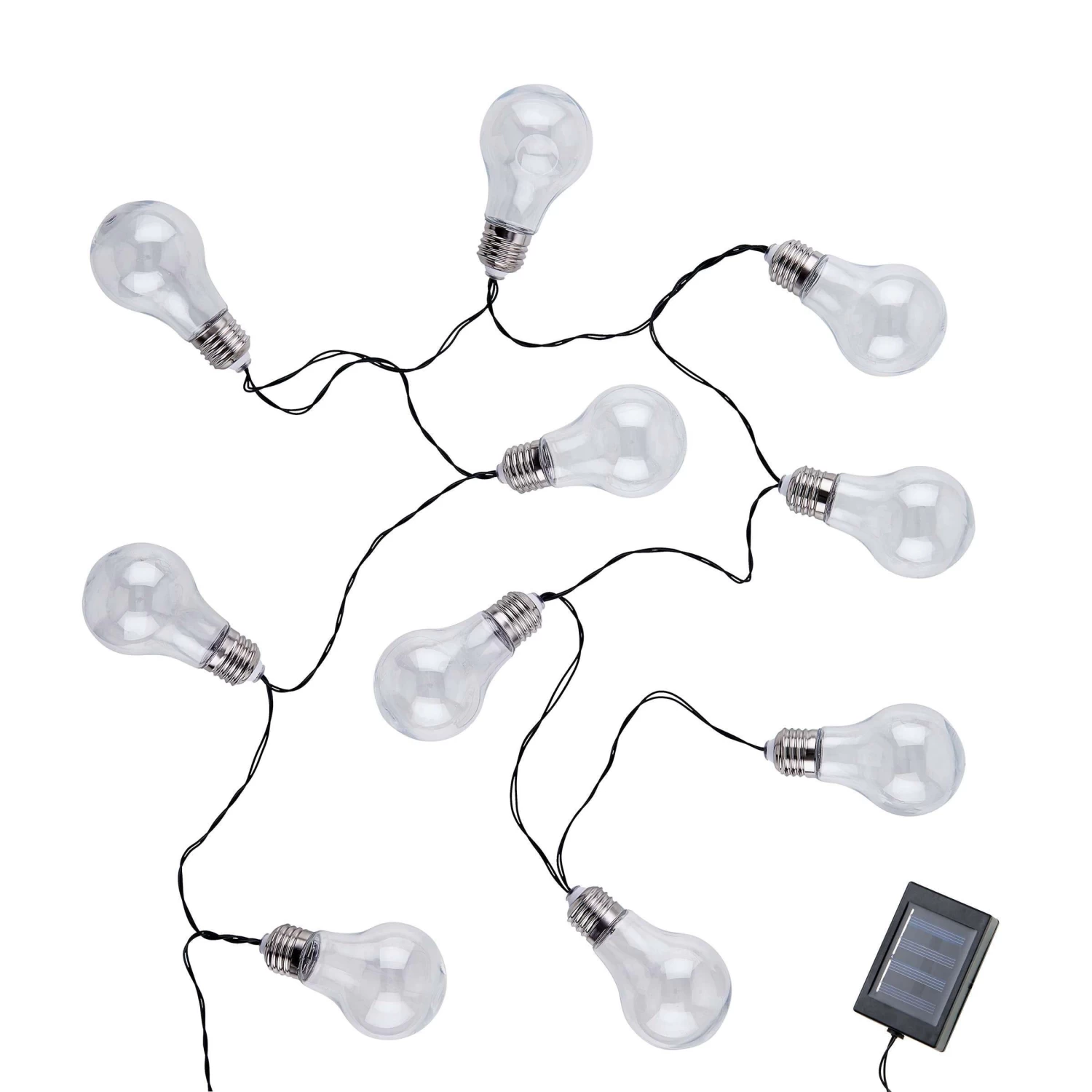 Die Glühbirne feiert Ihr Comeback als dezent schimmernde Sunlight Glühbirnenlichterkette Solar. Sie dekorieren die Lichterkette z.B. als stimmungsvolle Deko für Grillabende oder Gartenpartys. In Sträuchern oder Bäumen sorgt sie am Abend für Atmosphäre. Oder Sie verschönern Ihren Balkon, indem Sie die Lichterkette am Geländer oder auf dem gedeckten Tisch platzieren. In weiteren Variante erhältlich