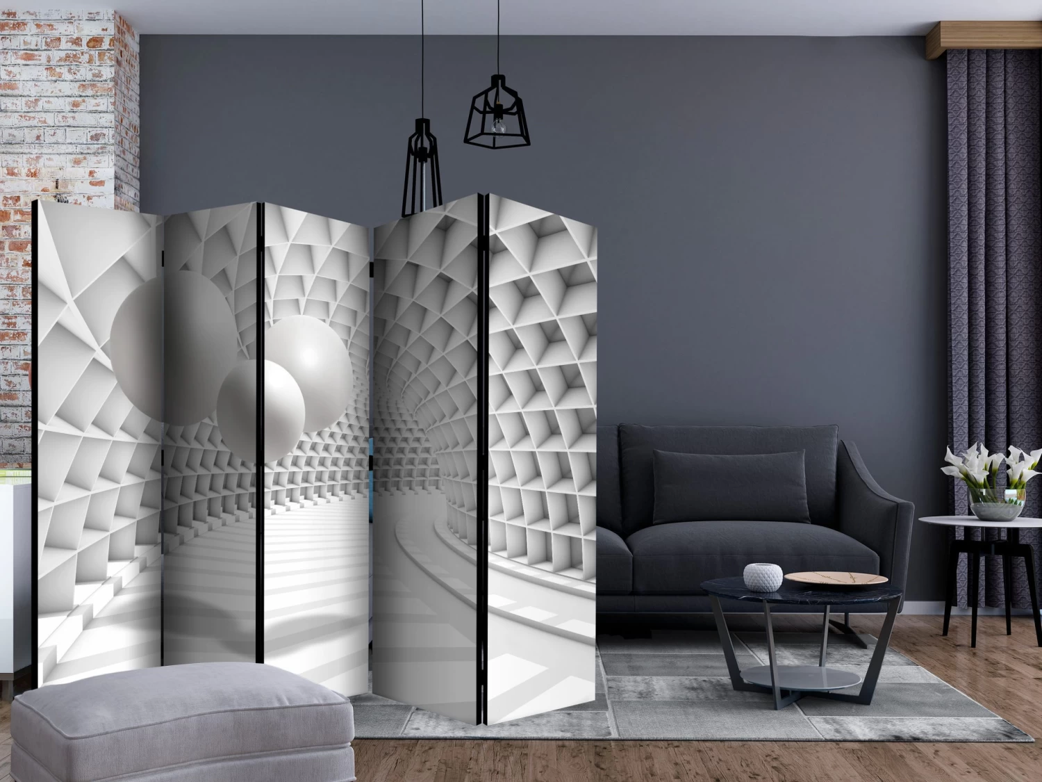 Dekoratives Paravent „Abstract Tunnel II [Room Dividers]“ ist ein besonderes Schmuckstück für die modernen Inneräume. 5-teilig, hergestellt aus Holz und beidseitig bedrucktes Paravent teilt nicht nur diskret den Raum sonder kreiert auch in dem Raum ein fabelhaftes Arrangement. Perfekte Herstellung sowie originelle Motive in der Full HD Druckqualität verursachen, dass die Zimmerparavents jedem Raum einen einmaligen Charme verleihen. Die dekorativen Paravents für die Wohnung, dass ist mit Sicherheit eine originelle Idee für die Dekoration des Innenraumes. Es lohnt sich ihre praktische Anwendung zu erwähnen – die Zimmerparavents kann man z.B. zwecks der Kachierung des Wäschetrockners nutzen. Das Paravent ist eine sehr originelle Dekoration von Räumen, die man nutzen kann, sowohl in der Wohnung wie auch in einem Atelier z.B. im Friseursalon, Arztpraxis oder im Buchhaltungsbüro. Dekoratives Paravent bewährt sich ideal als:Als Zimmerparavent und ein dekoratives Möbelstück, dass den großen Salon vom Speisezimmer und Küche trenntIn einer Ein-Zimmer-Wohnung, in dem es den Tagesraum vom Schlafzimmer trenntAls Paravent für das Schlafzimmer, in dem es z.B. die Kleingarderobe heraustrenntIn Boutiquen und Kosmetiksalons, als orignelles Arrangement und Umkleideraum in Einem!Im gemeinsamen Geschwisterzimmer, als diskrete Trennwand für den RaumIn grossen Wohnungen und Lofts Technische Daten: