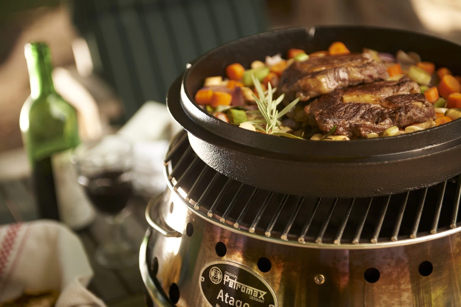 Deckel des Feuertopfs auch als Pfanne oder Servierteller einsetzbar