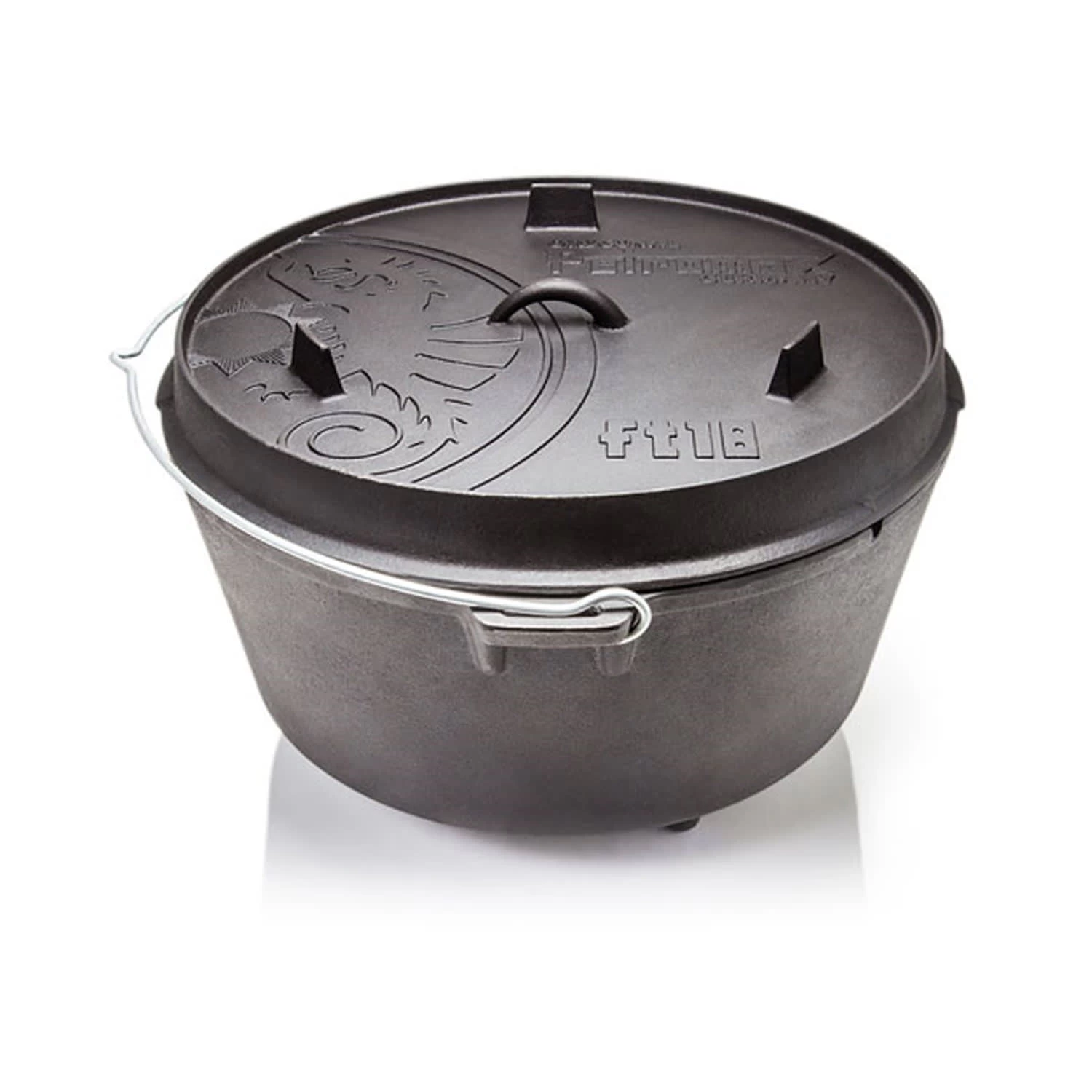 Petromax Feuertopf ft18 – Dutch Oven – Gusstopf – mit Füßen – mit Henkel – 16,1L – +20 Personen Kochen und Grillen am offenen Feuer wie es Menschen bereits seit Jahrtausenden tun – die ursprüngliche Art zu Kochen! Ob Lagerfeuer, Glut oder Holzkohle: