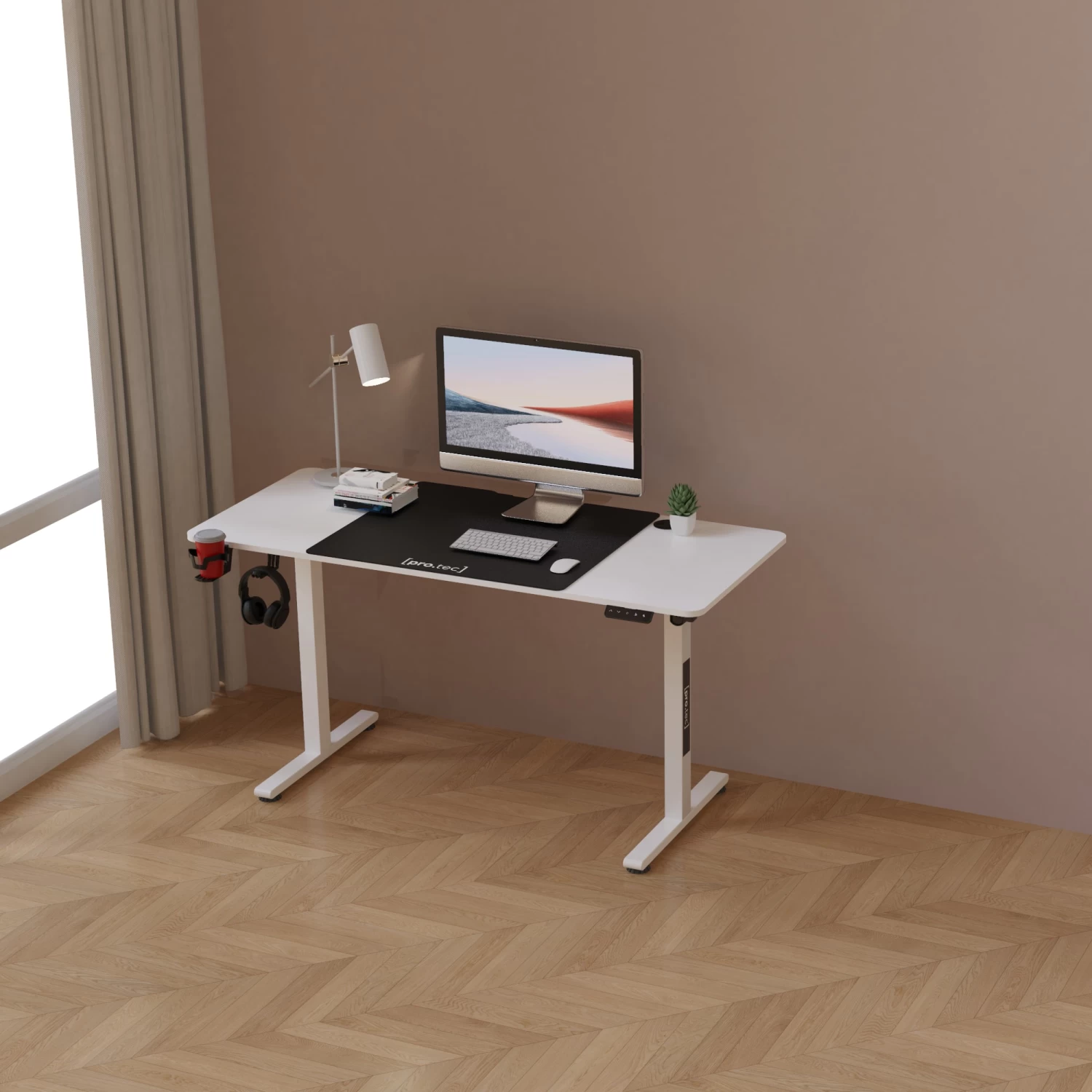 – Stufenlos verstellbares Tischgestell (1 cm pro Sekunde)