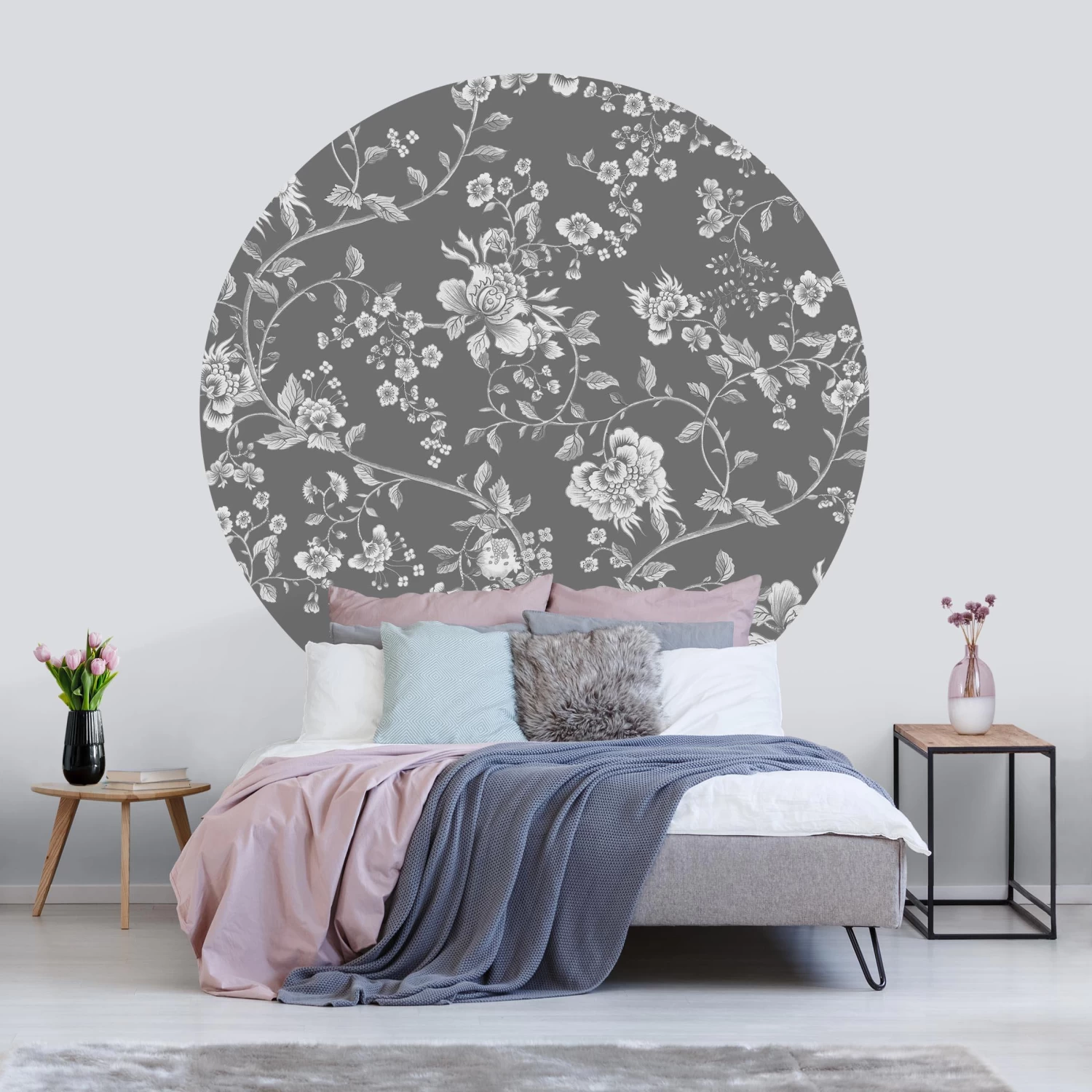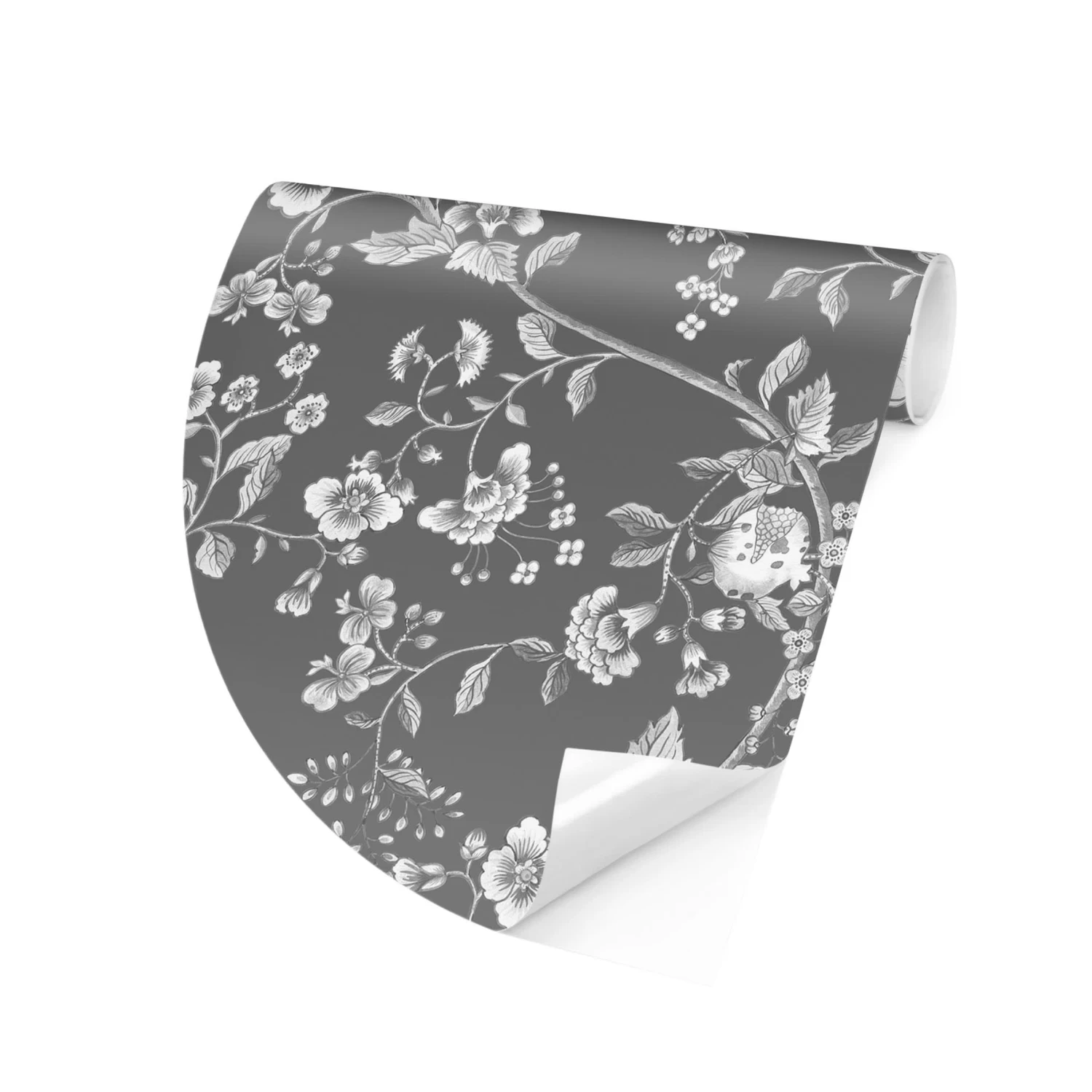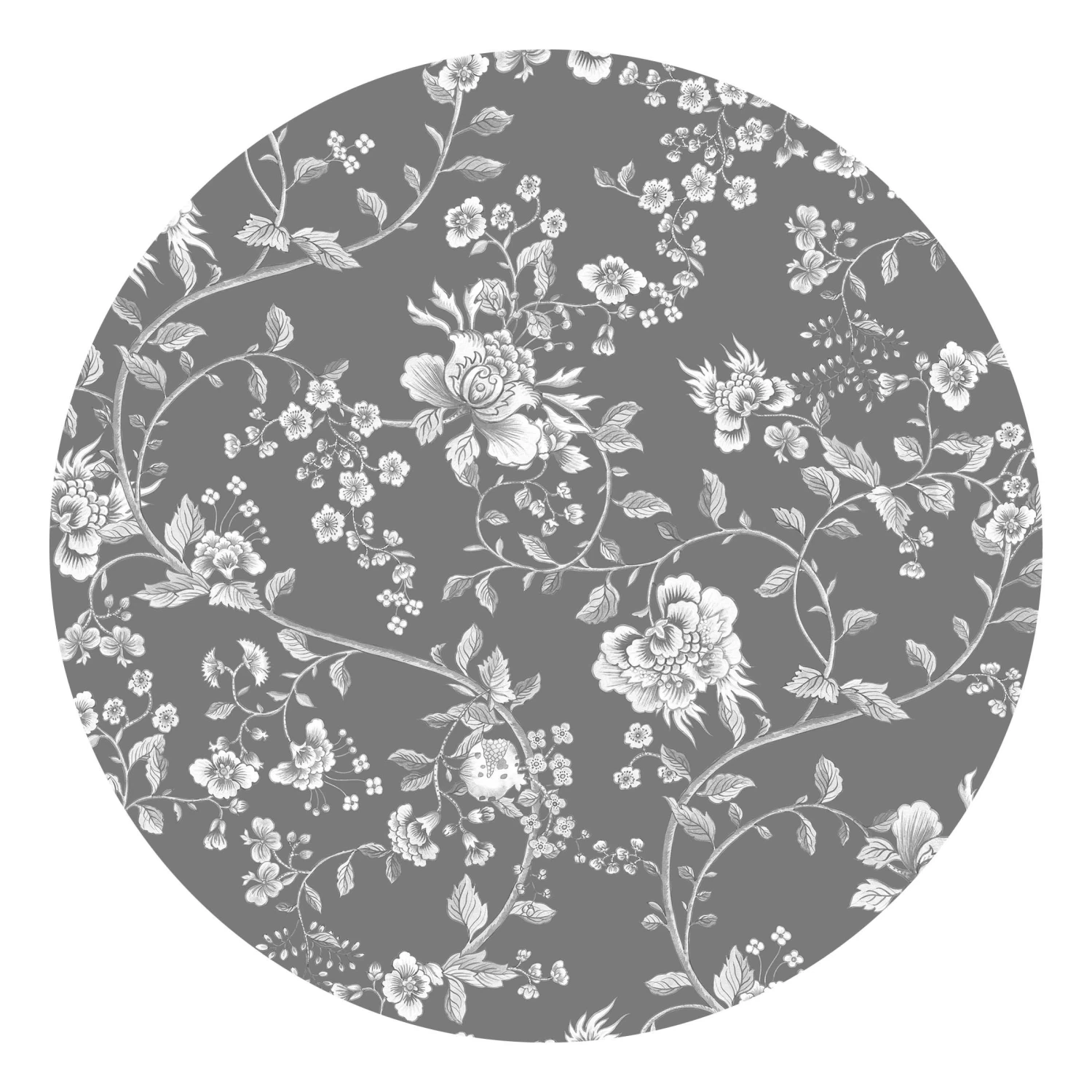 Runde Tapete – Blumenranken Auf Grau In Grau