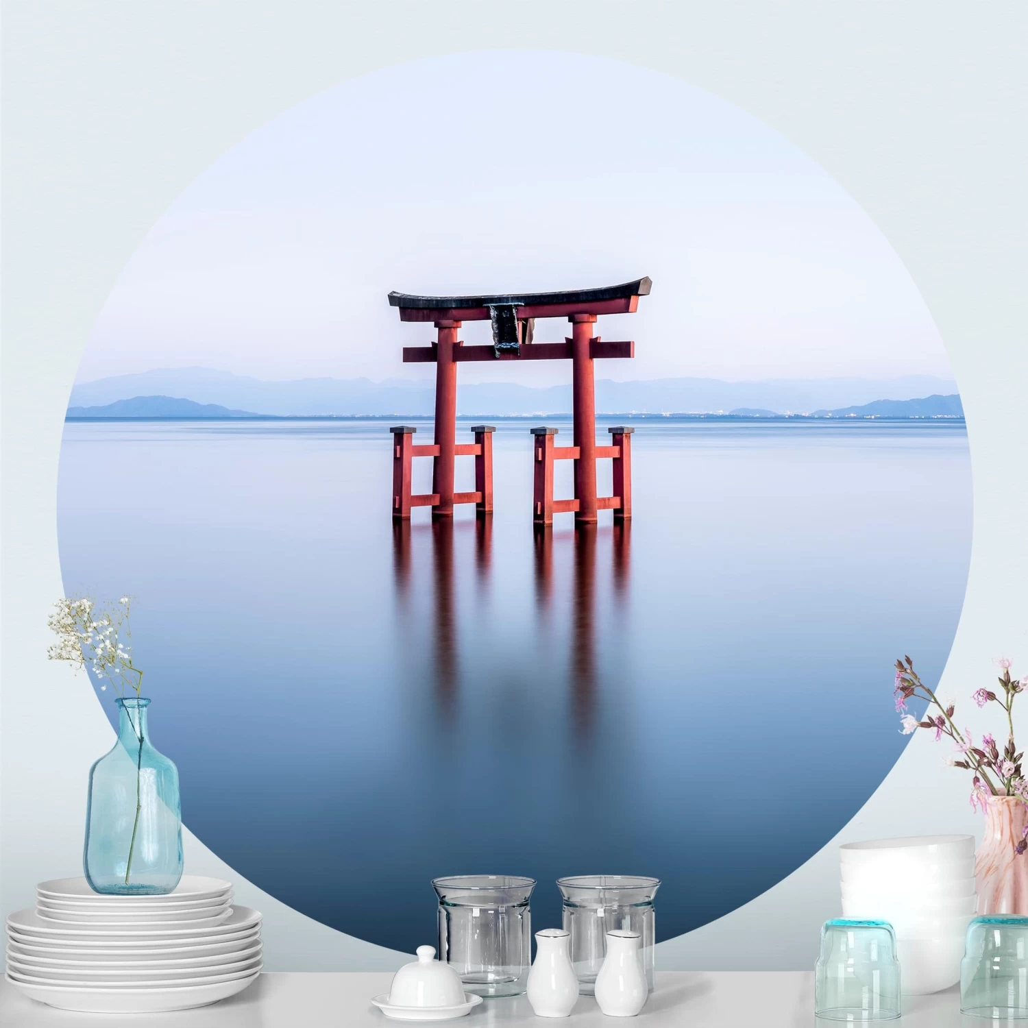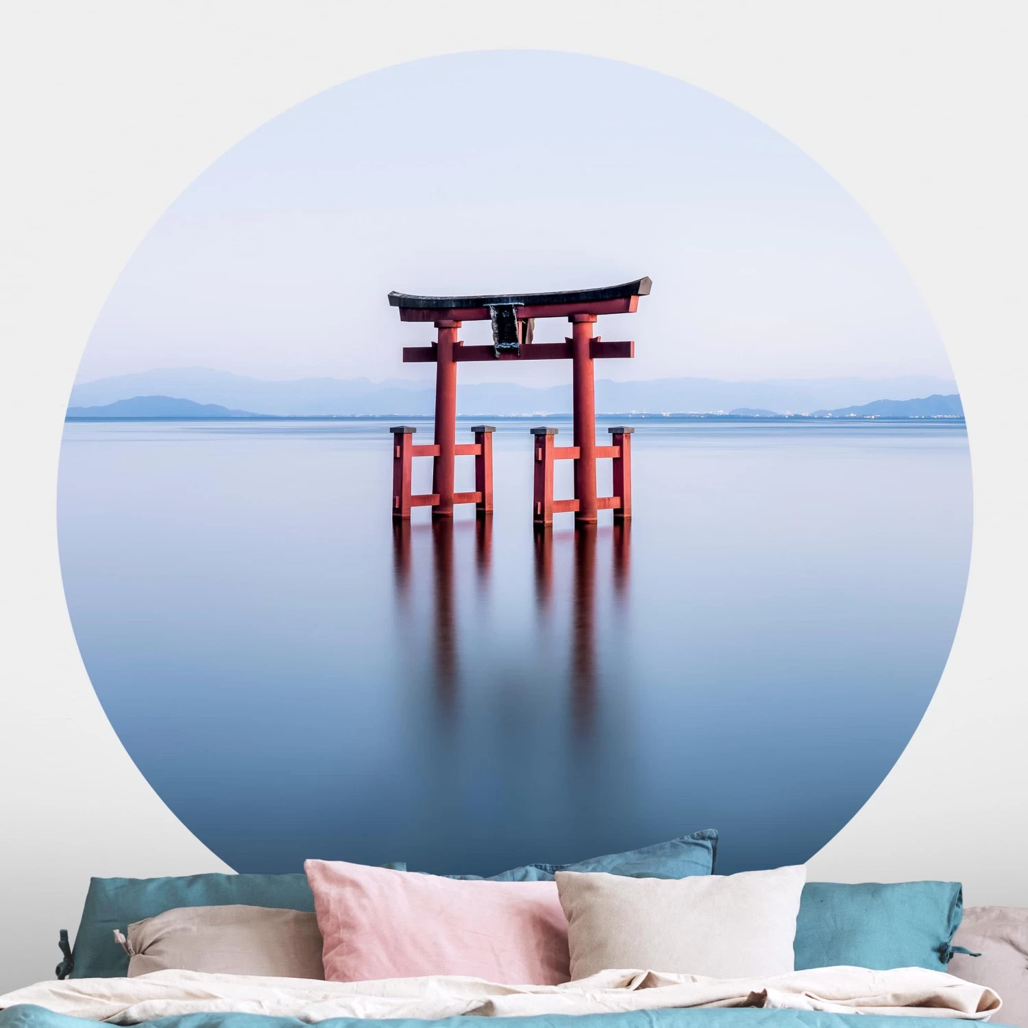 Runde Tapete – Torii Im Wasser In Blau