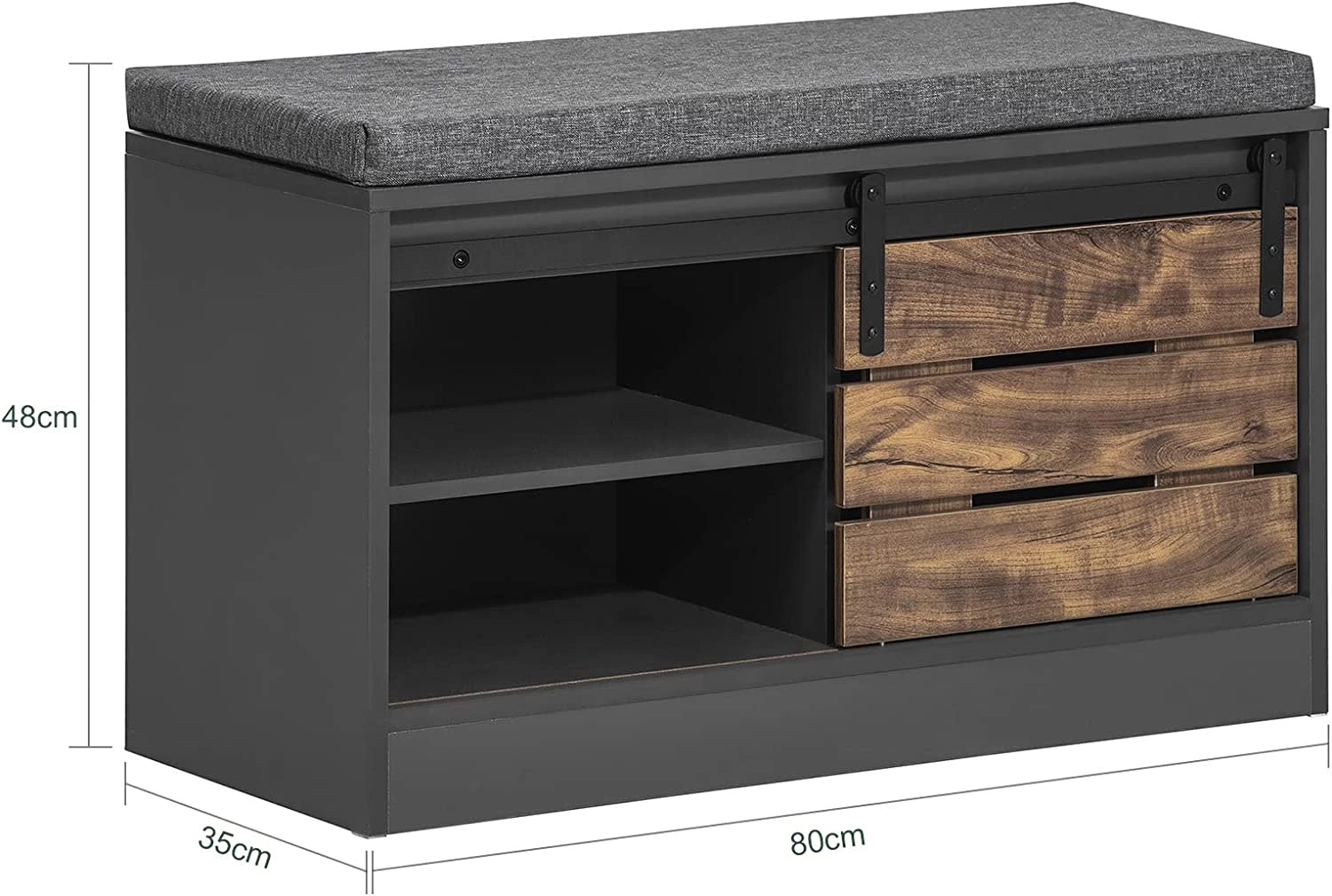 Diese Schuhbank sorgt für frischen Wind in Ihrem Zuhause. Die zweifarbige Oberfläche und die Schiebetür, die sich mühelos hin und her bewegen lässt, sorgen für eine besondere Note. Er wird eine einzigartige dekorative Ergänzung zu Ihrem Schlafzimmer oder Flur sein.