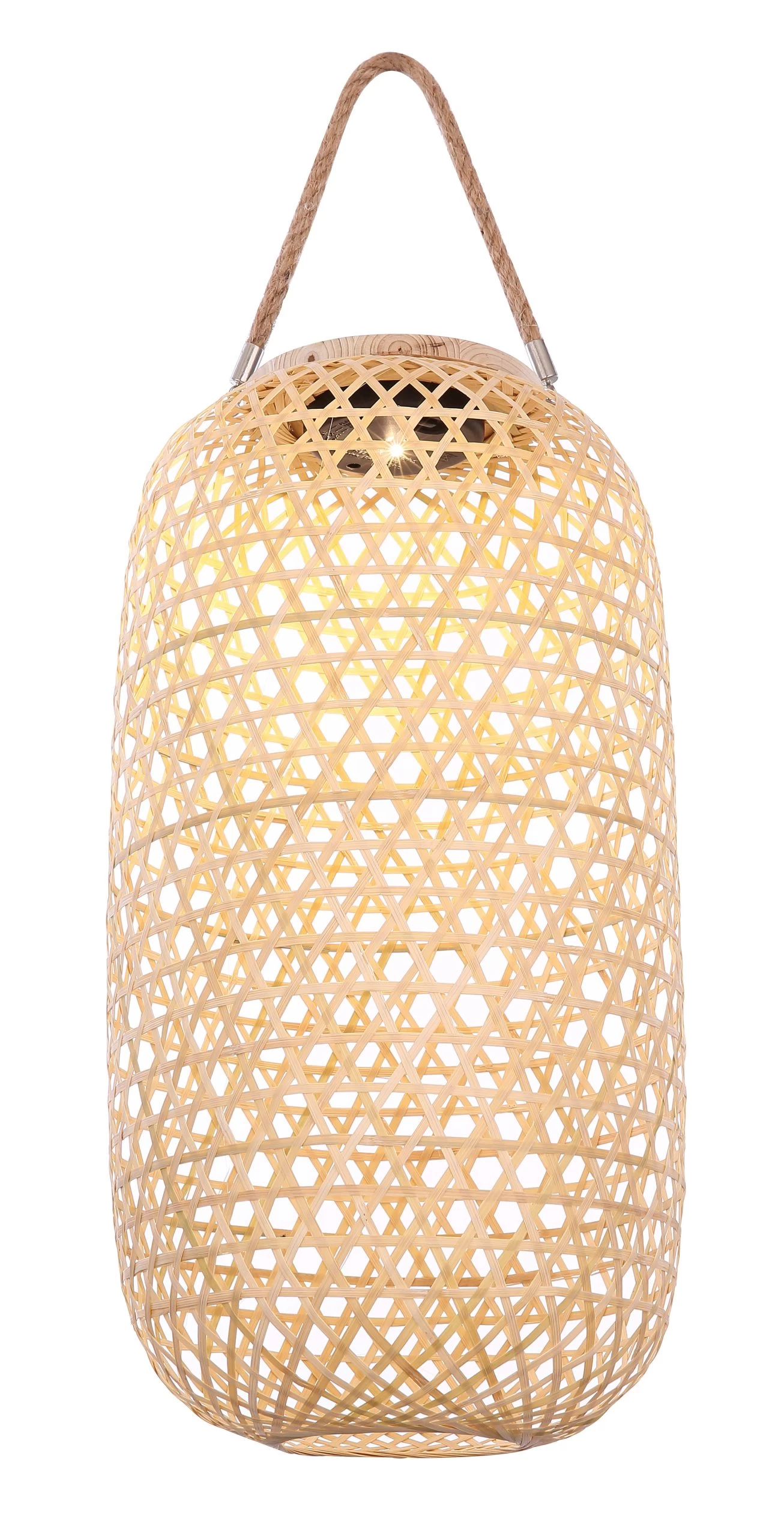 Solarleuchte Bambus naturfarben, Kunststoff, Schiebeschalter, Akku inkludiert AA 600mAh 1.2V, IP44, Laterne zum Hängen oder Stellen, ø: 225mm, H: 565mm, inkl. LED 0.06W 3V, 1800K