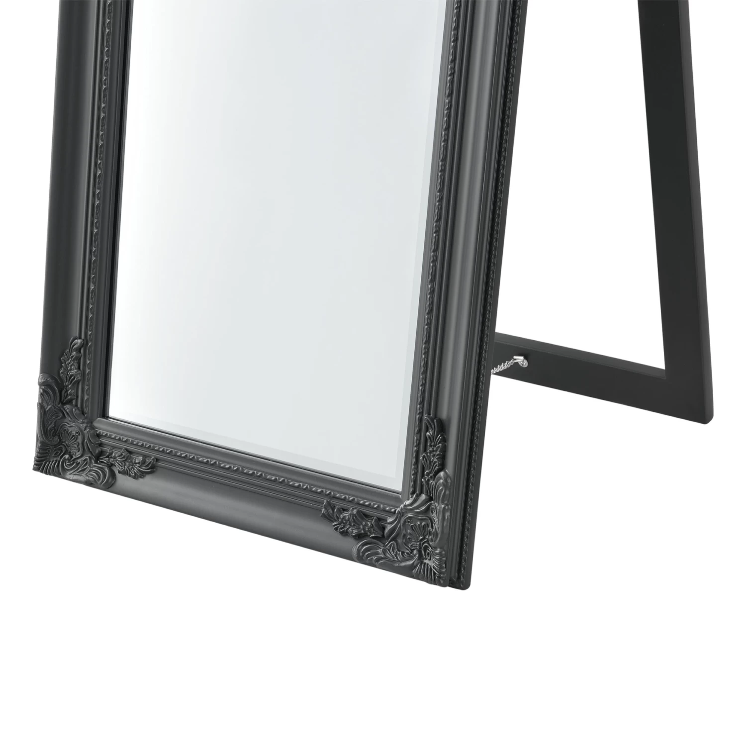 Der Ganzkörperspiegel eignet sich ideal für Ihren Flur, Ihr Schlafzimmer, Ihren Ankleideraum oder wo auch immer Sie einen Spiegel benötigen. Durch den verzierten Rahmen im dekorativen Barock-Stil sorgt er stets für eine klassische und elegante Atmosphäre. Der neigbare Aufsteller sorgt für einen stabilen Stand.