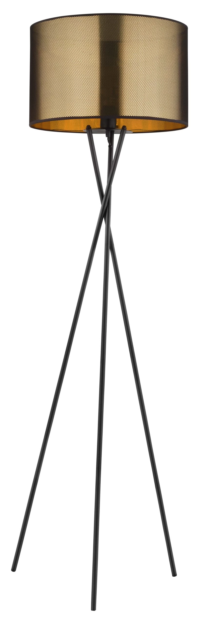 Stehleuchte Metall schwarz matt, Textil schwarz, Kunststoff goldfarben, 3-Bein, ø: 485mm, H: 1590mm, Kabellänge 1800mm, exkl. 1x E27 40W 230V