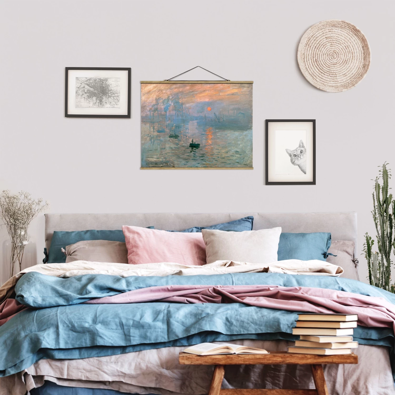 Stoffbild Mit Posterleisten – Claude Monet – Impression In Blau