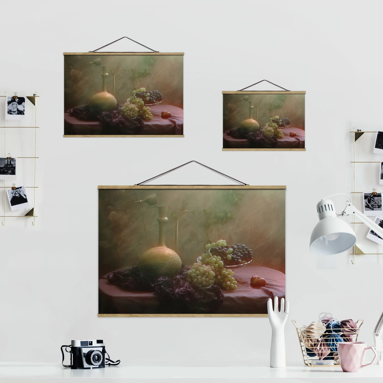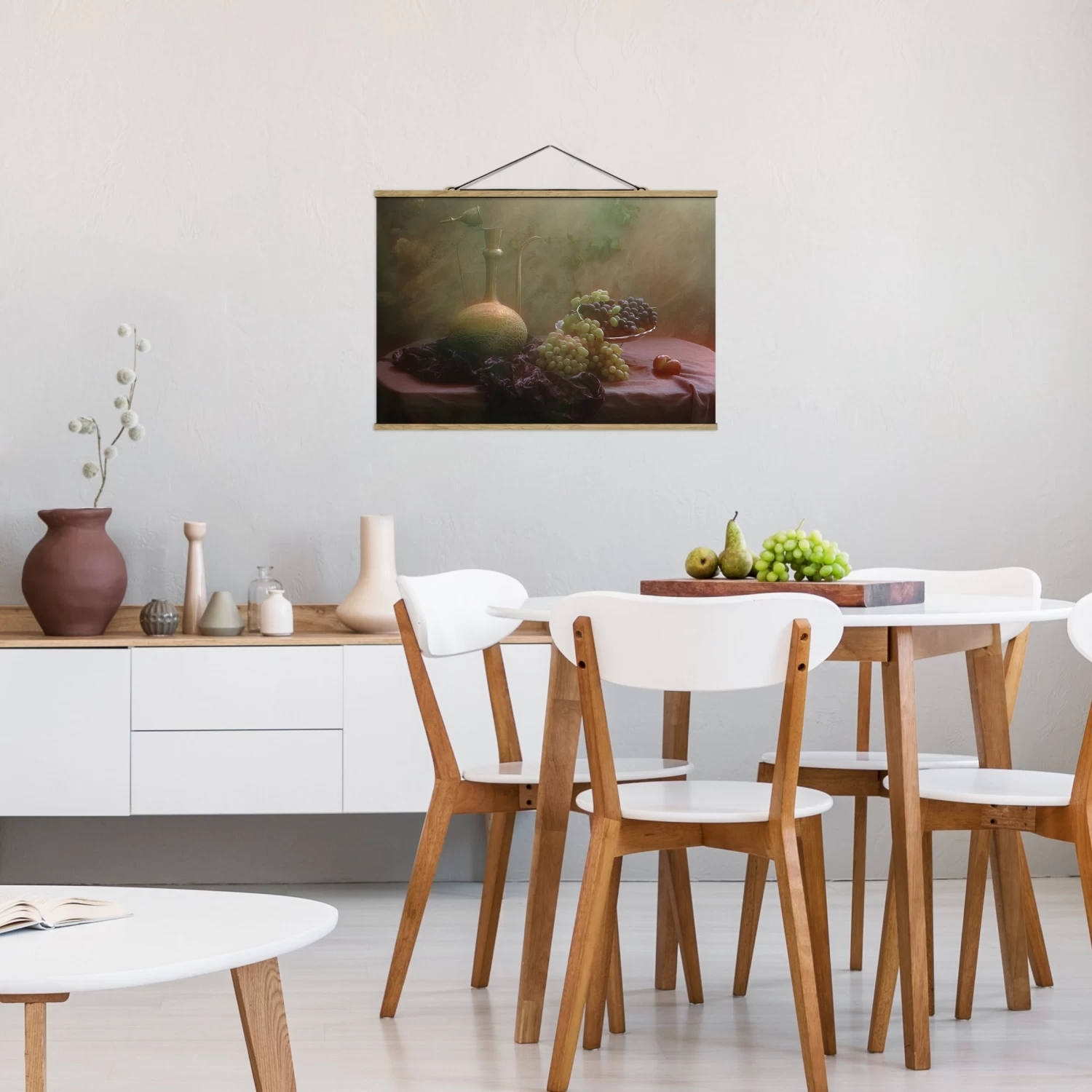 Stoffbild Mit Posterleisten – Stillleben Mit Früchten In Grün