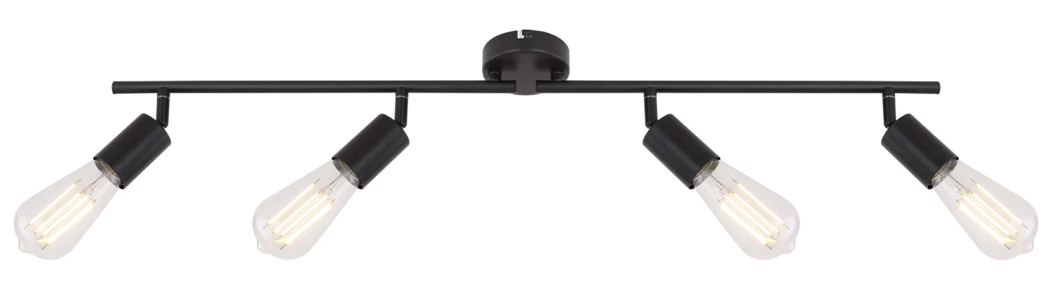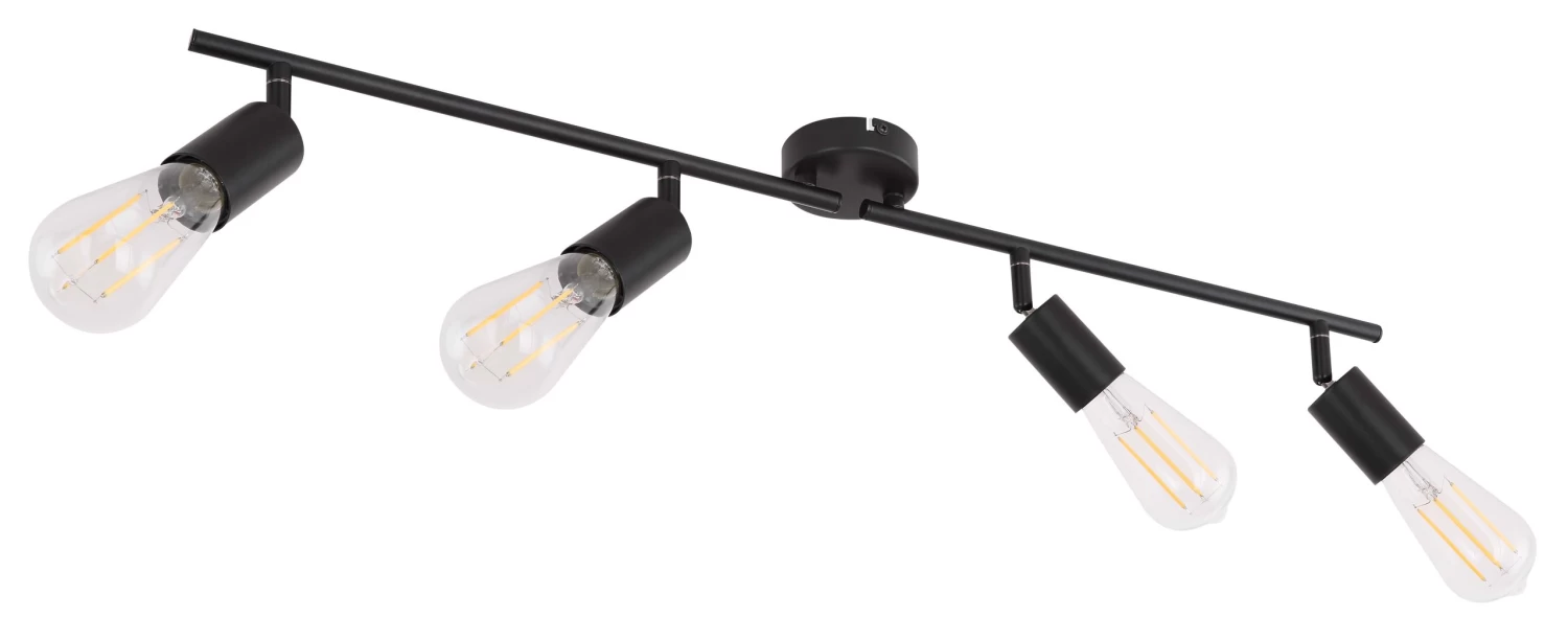 Strahler Metall schwarz, beweglich, ohne Schirm, LxBxH: 800x85x155mm, exkl. 4x E27 60W 230V
