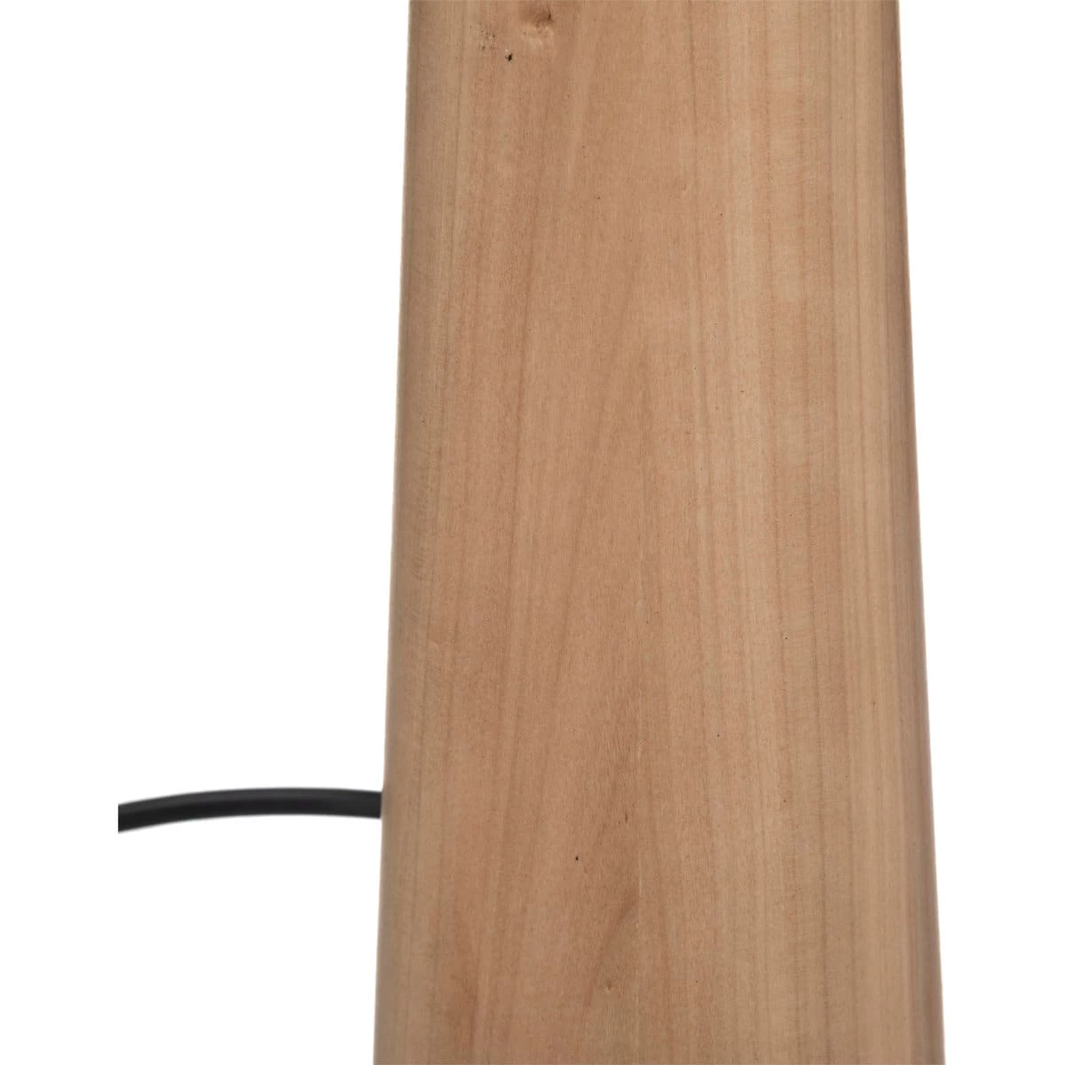Holzsockel: Der Sockel der Lampe ist ein ordentliches Stück Kiefernholz. Die konische Form vermittelt den Eindruck von solide und stabil. Es wird durch einen hellen Lampenschirm ausgeglichen. Holz hat einen natürlichen, warmen Farbton.
