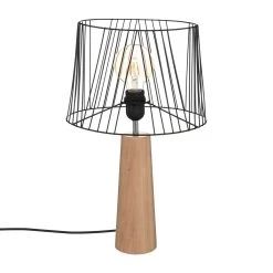JOE Loft Tischlampe mit massivem Holzsockel und Lampenschirm aus Metall