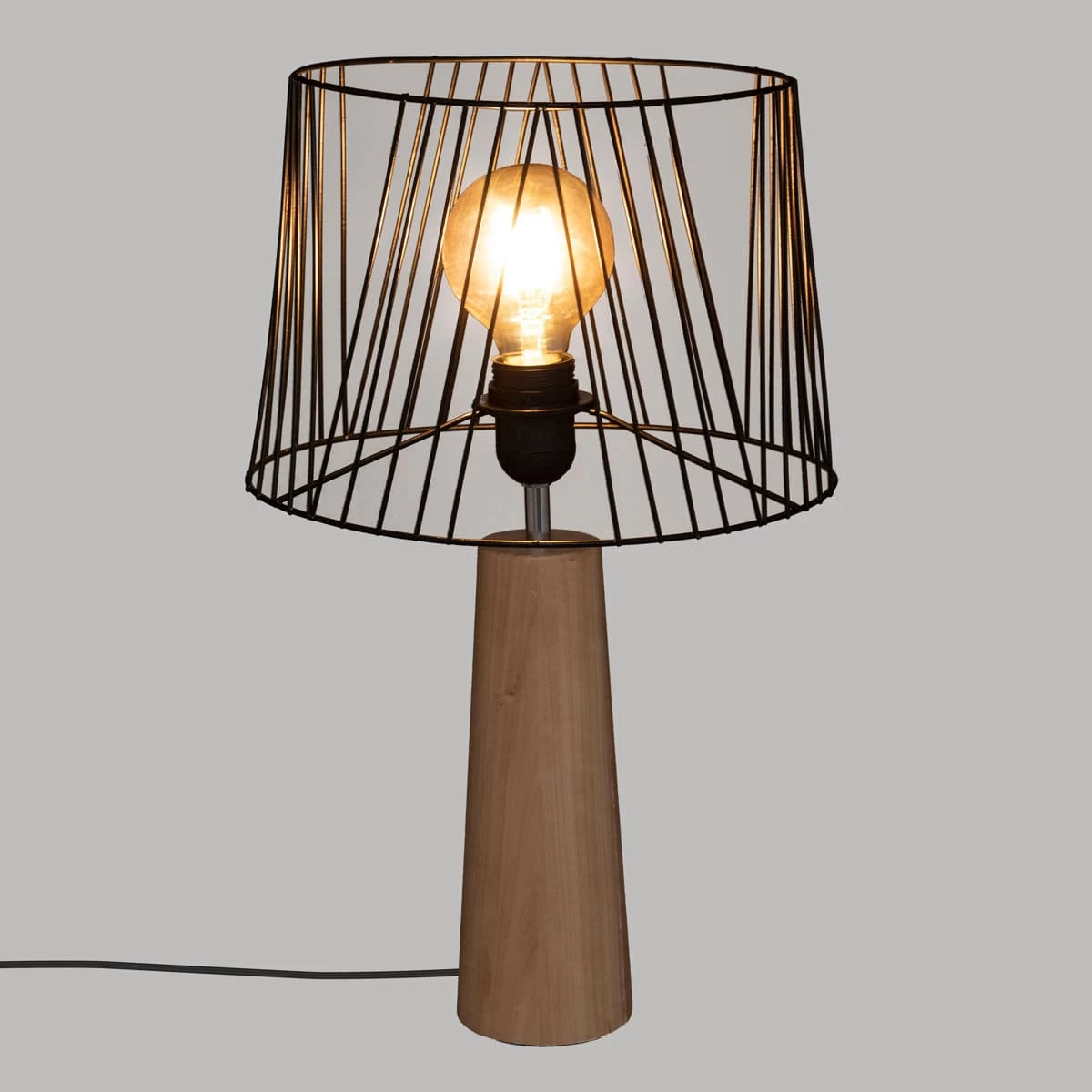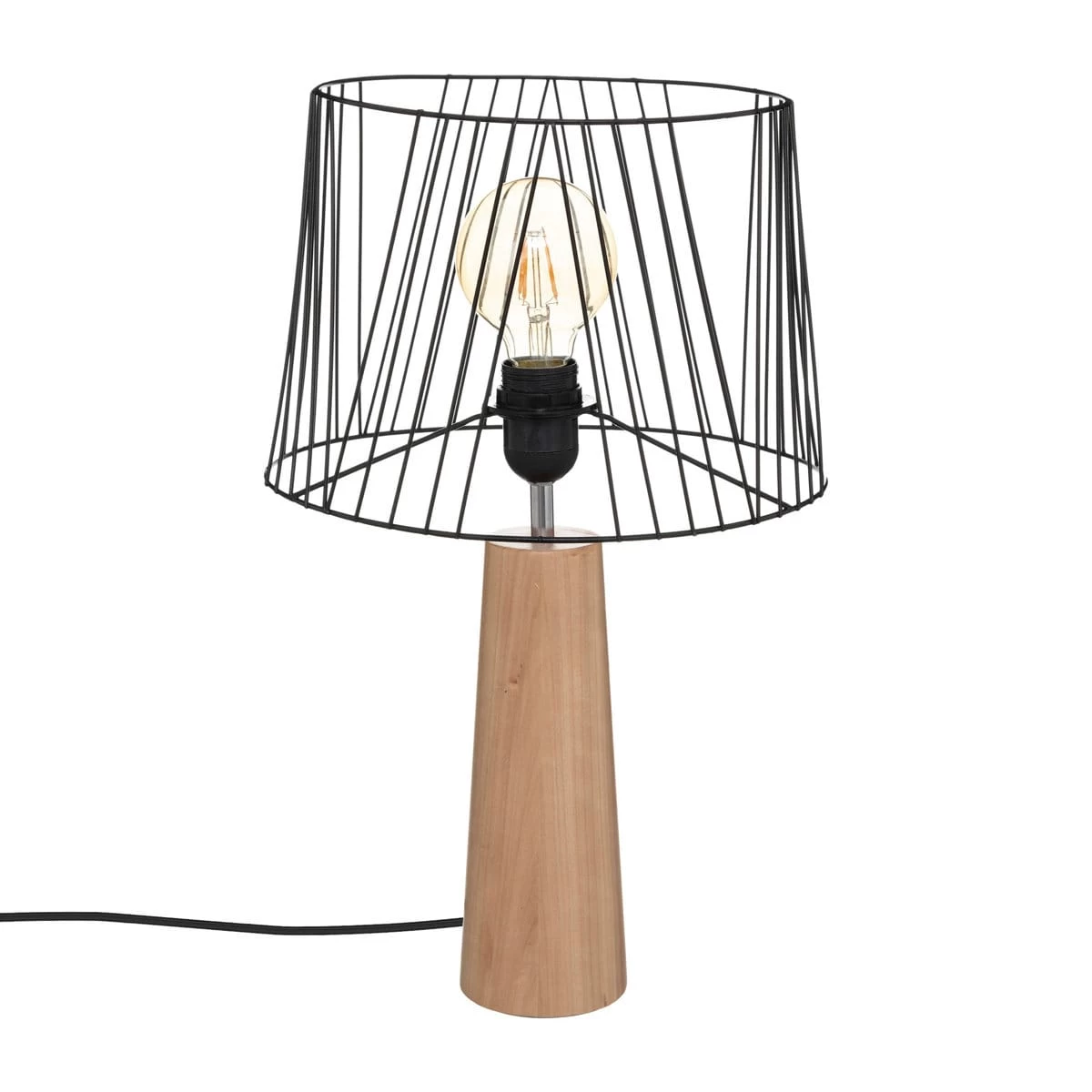 Schwarzer Lampenschirm aus Metall: Der Lampenschirm aus Metallstaubblättern verleiht der Leuchte Leichtigkeit und unterstreicht ihren industriellen Charakter. Der schwarze Lampenschirm passt wunderbar zum Holzsockel.