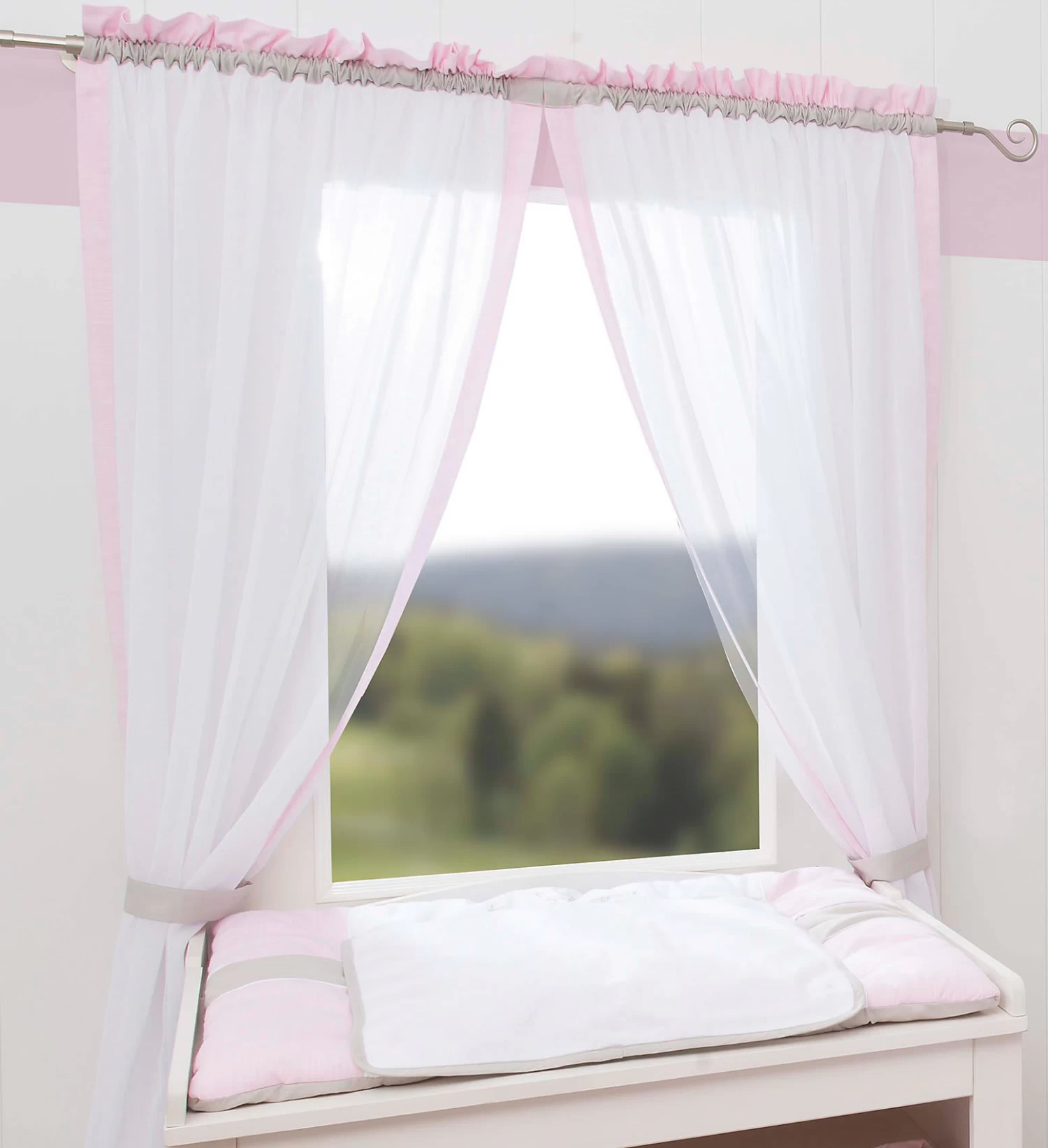 Der Voile Vorhang ist weiß-transparent und lässt das Kinderzimmer im sanften Licht erstrahlen. Das Set besteht aus 2 Schals mit Raffhalter und wird einfach auf eine Gardinenstange aufgezogen. Die zwei unterschiedlich breiten Tunnel lassen Spielraum für unterschiedlich große Gardinenstangen.