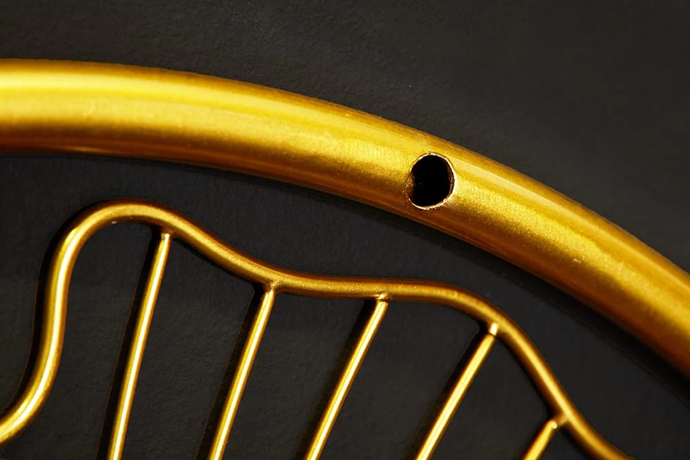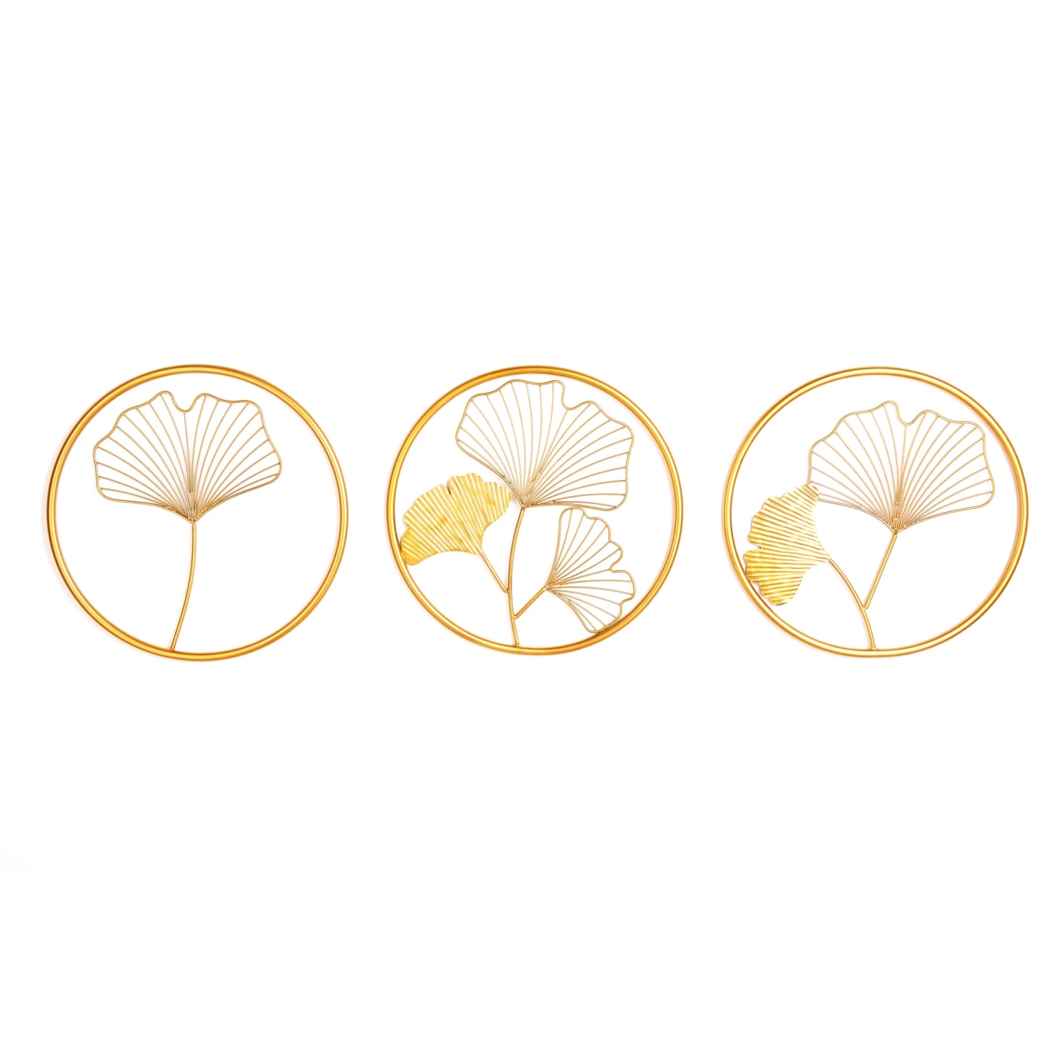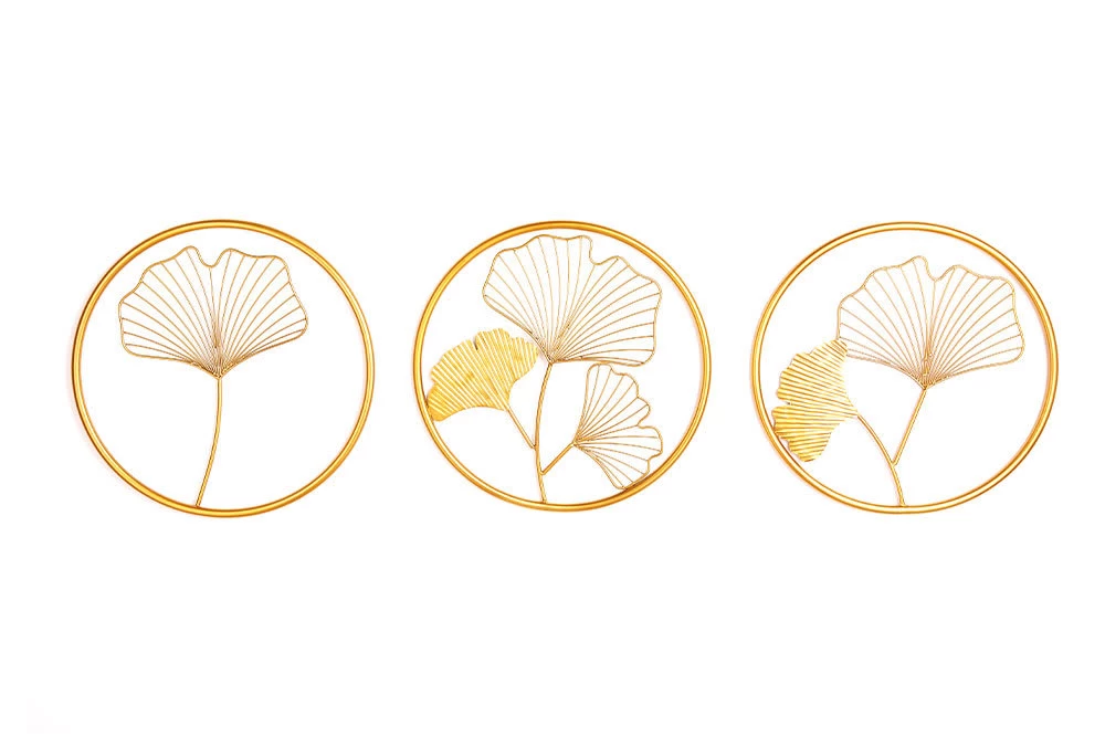 – die Wanddekoration besteht aus drei goldenen Kreisen mit integrierter Aufhängung