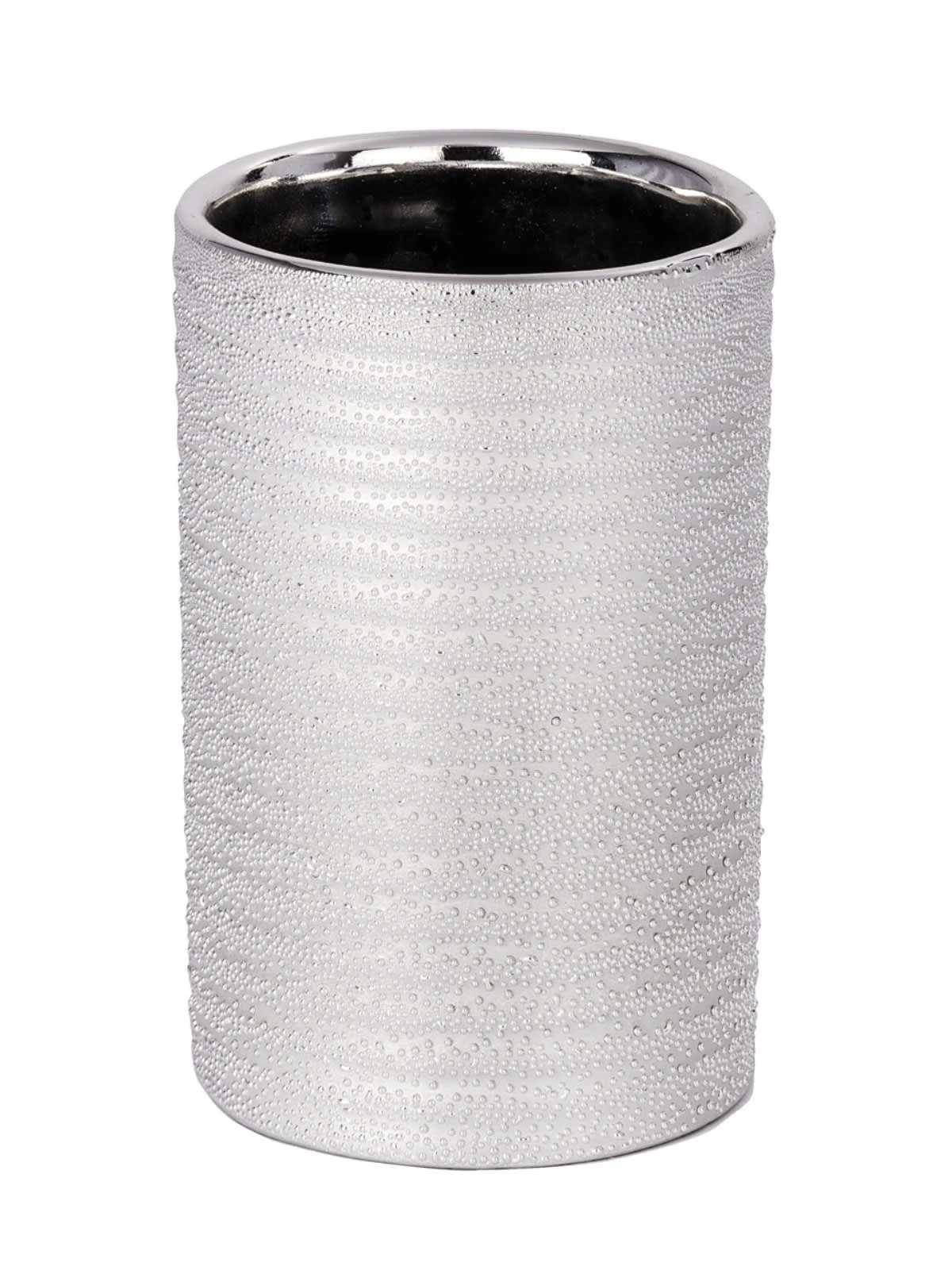 Die Bad-Accessoires Serie Polaris Juwel zeichnet sich durch moderne Formen und hochwertige Keramik aus. Das glänzende Silber mit aufwendig strukturierter Oberfläche verleiht jedem Badezimmer stilvolle Eleganz.