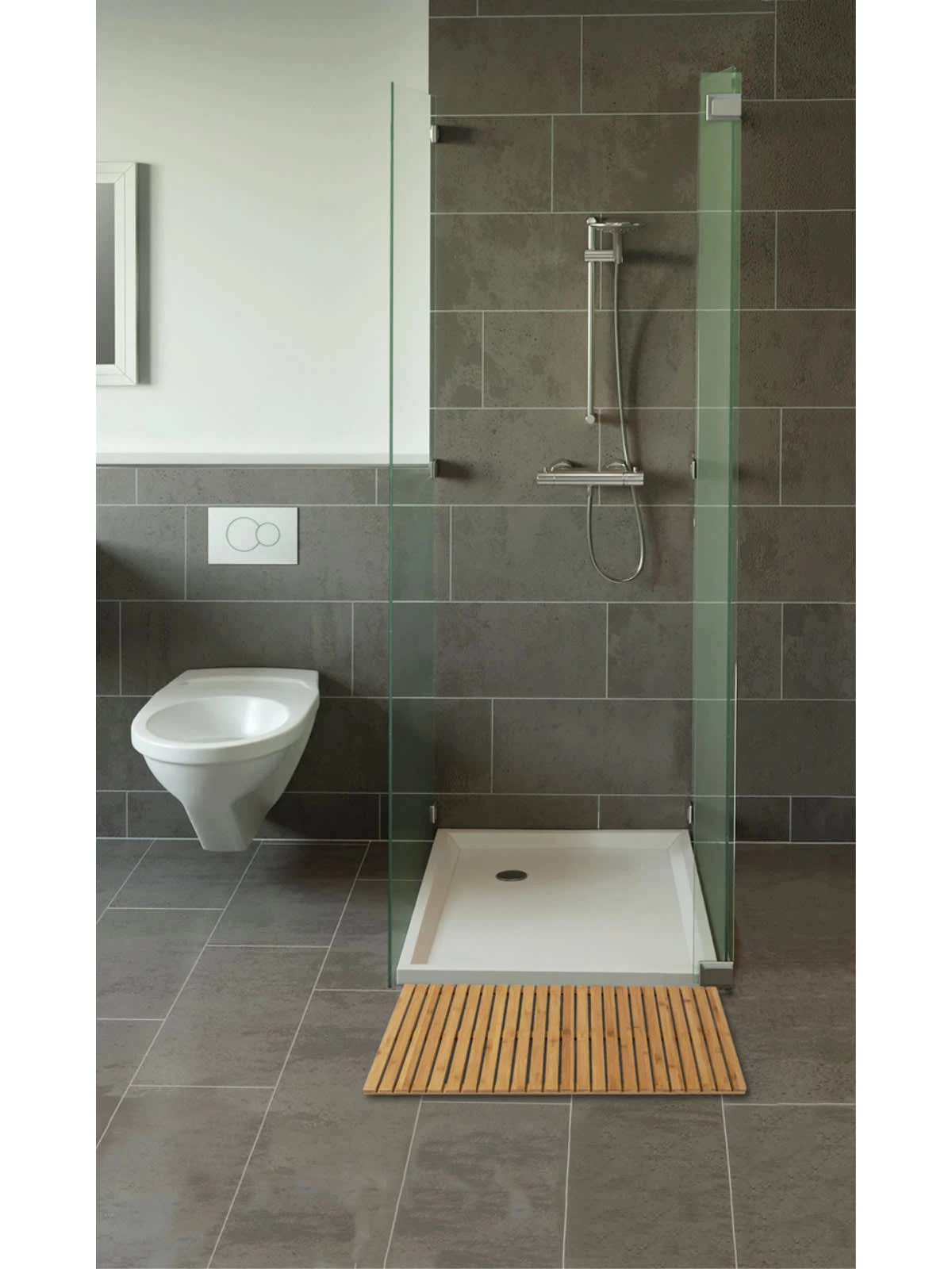Die praktische Badematte Indoor & Outdoor ergänzt die Badezimmer-Einrichtung um ein funktionelles, natürliches Element bei Dusche und Badewanne.