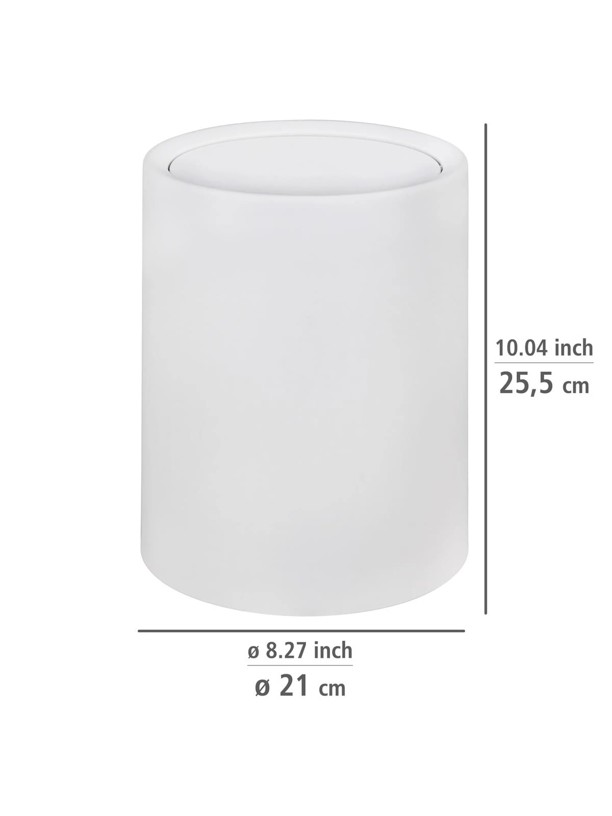 Zu dem minimalistisch gestalteten Kosmetikeimer passt die cleane Farbgebung in klassischem matten Weiß. So fügt sich der nützliche, helle Bad-Helfer zurückhaltend aber stilvoll in Badezimmer oder Gäste-WCs ein. Auch in anderen Räumen wie der Küche oder dem Büro macht der charmante Mülleimer eine gute Figur.