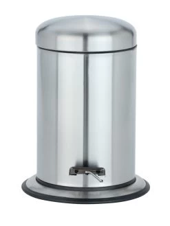 Der Treteimer aus rostfreiem, satiniertem Edelstahl ist ideal als Kosmetikeimer im Badezimmer einsetzbar.