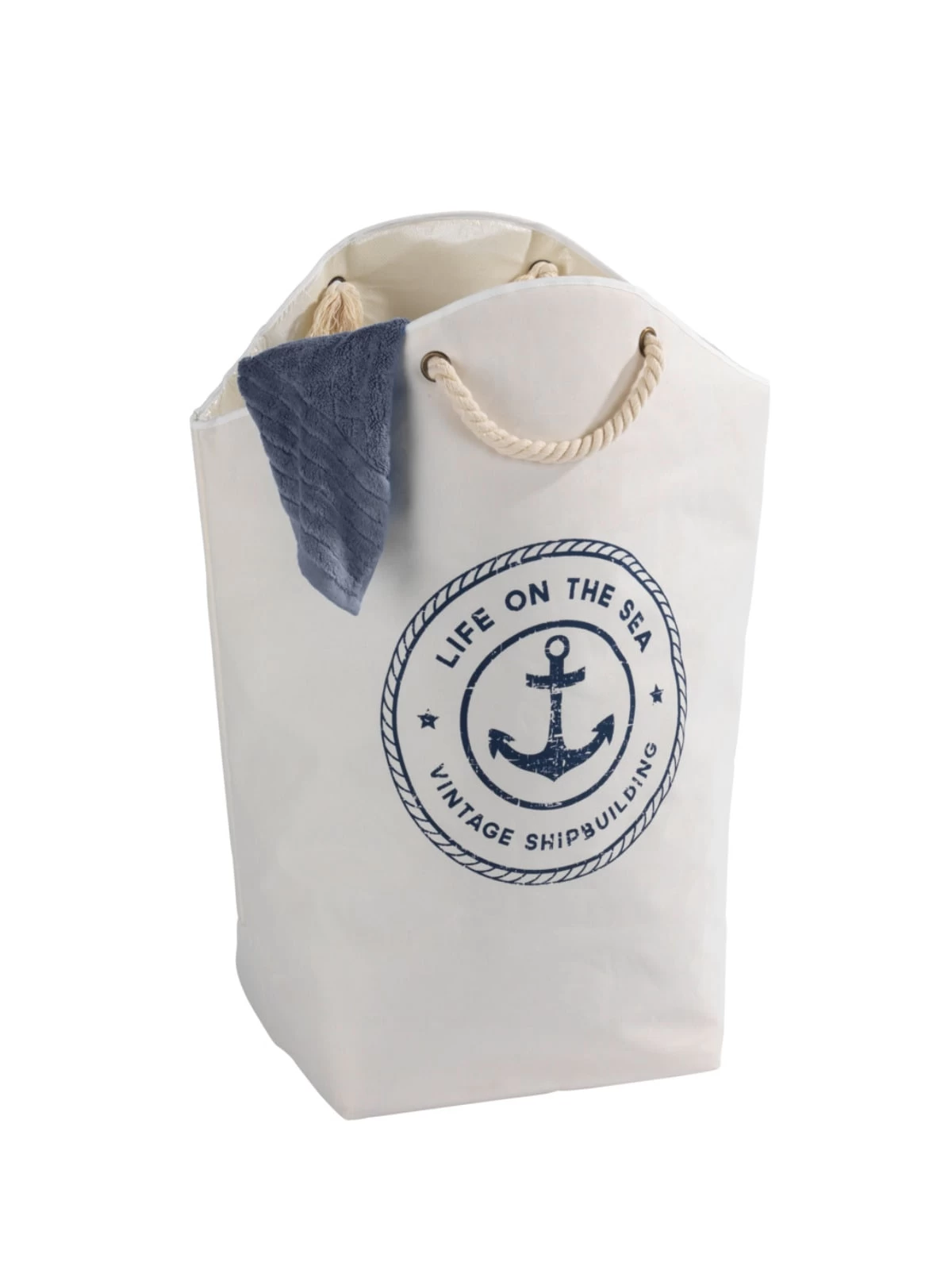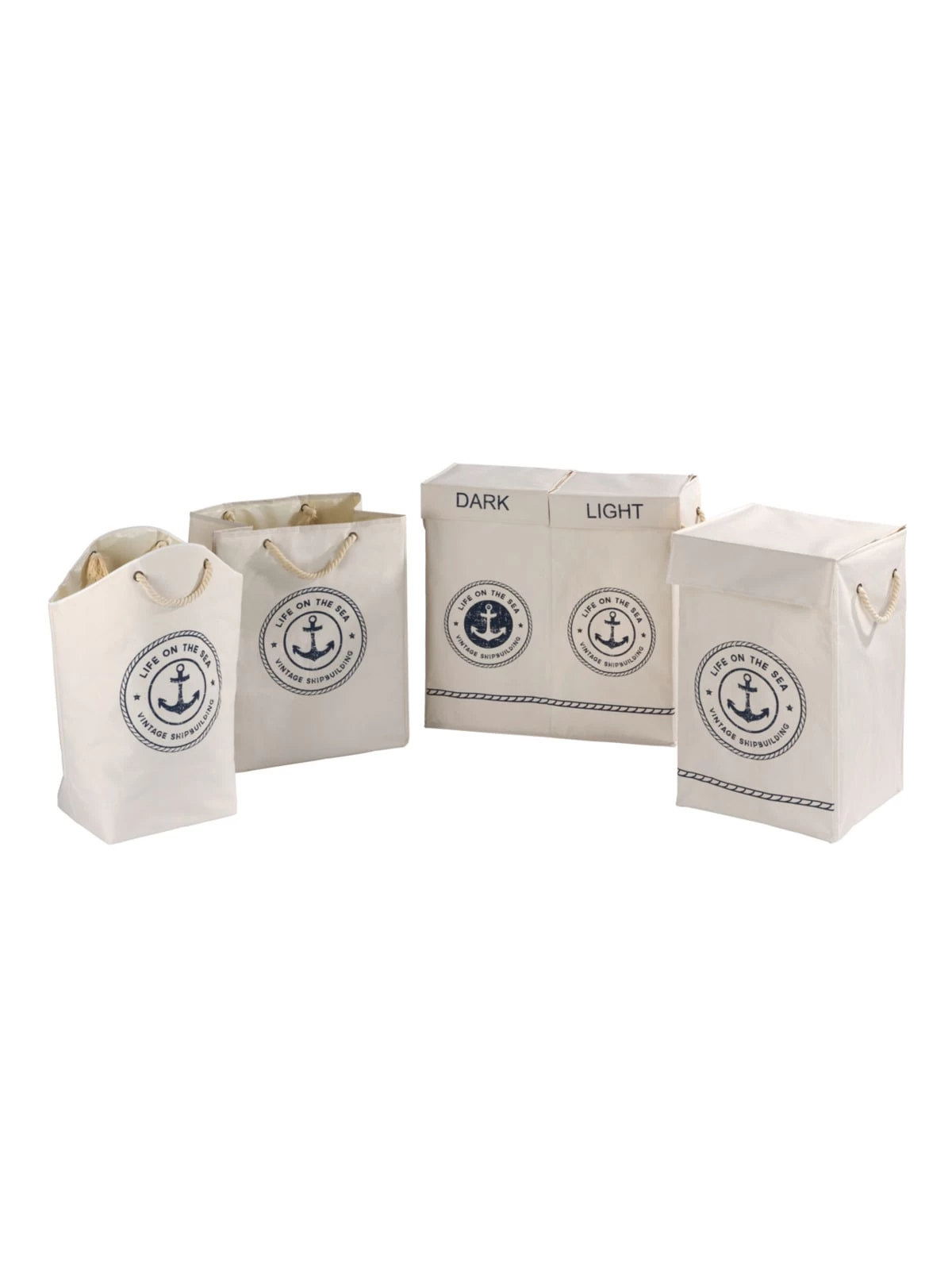 Der Sammler wurde aus Polyester und PP Faserstoff hergestellt. Diese hochwertigen Materialien sichern die hohe Reißfestigkeit und ermöglichen eine schnelle und problemlose Reinigung des WENKO Wäschesammlers. Diese mobile und faltbare Wäschetruhe kann dank der geflochtenen Tragegriffe, sowohl leer als auch gefüllt, problemlos zur Waschmaschine transportiert werden. Die Griffe und der Wäschesammler selbst präsentieren sich in einem trendigem maritimen Stil in elegantem beigem Farbton. Für alle, die bereits einen Wäschesammler haben, bietet der WENKO Sammler sich auch alternativ als Shopper für Ihre Einkäufe an. So können selbst große Einkäufe sicher und dekorativ im Auto und im Einkaufswagen transportiert werden.